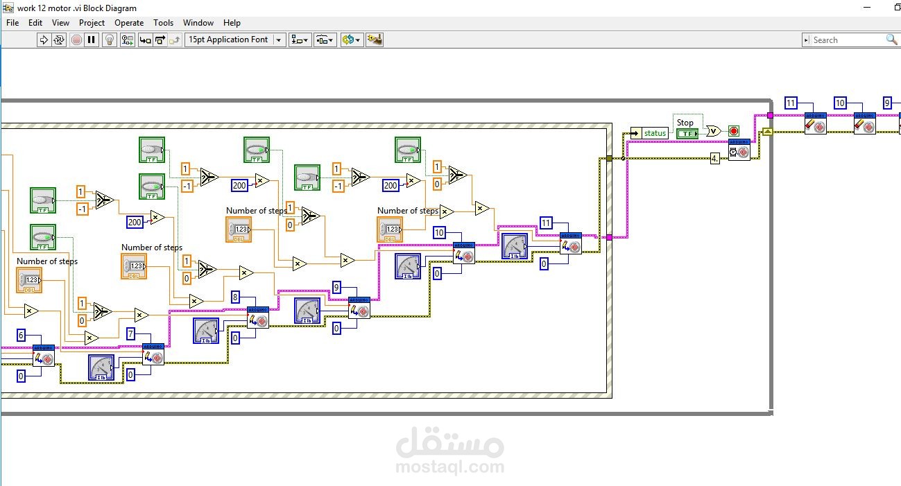 قمت بالتحكم في 25 stepper motor بعمل واجهة تحكم بسيطة للتحكم في السرعة والاتجاه و steps علي labview وبإستخدام labview interface with arduino وكان ذلك مشروع هنا في مستقل