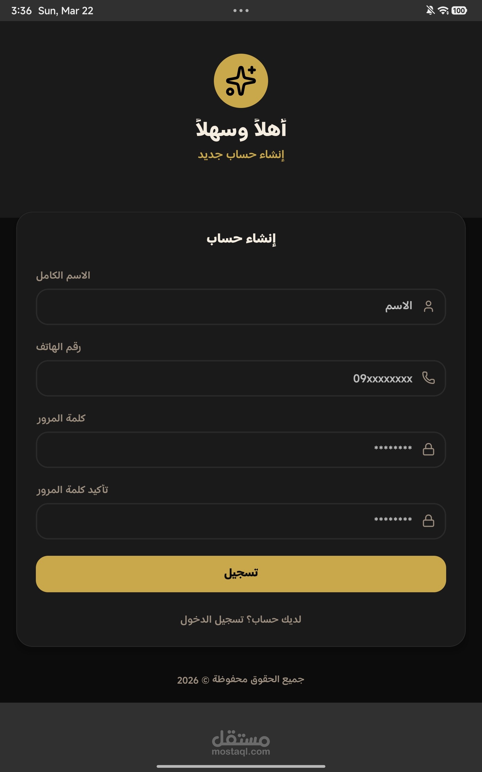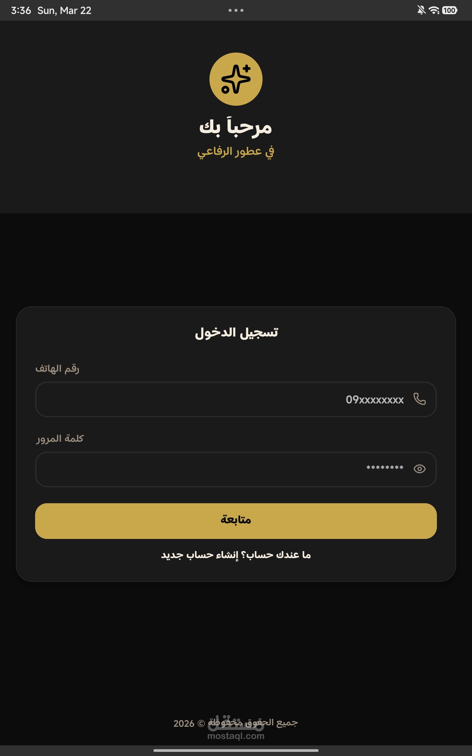 1- انشاء/تسجيل دخول