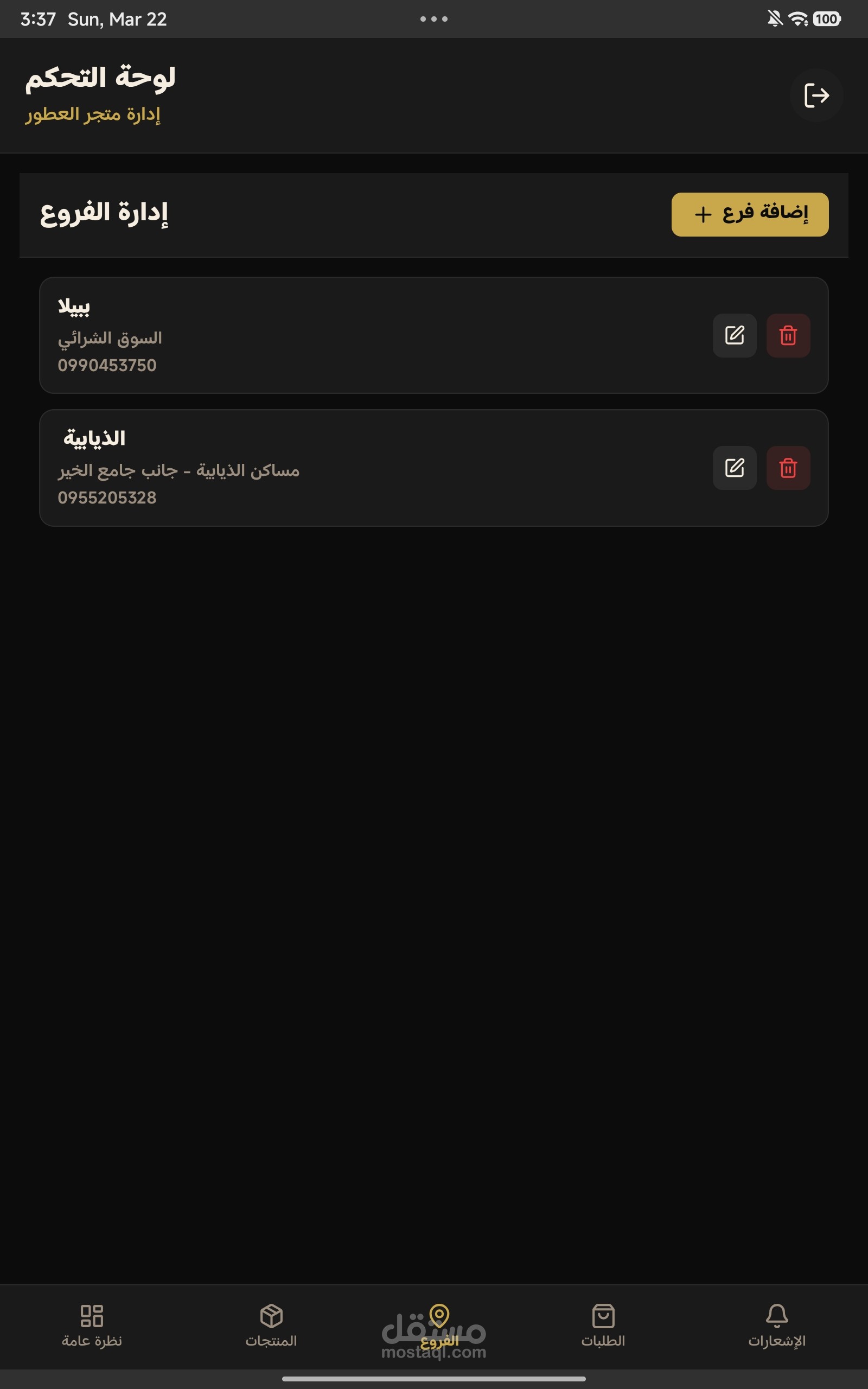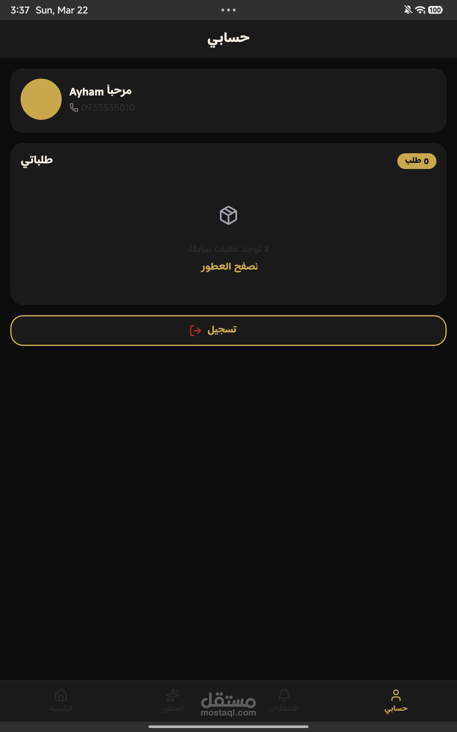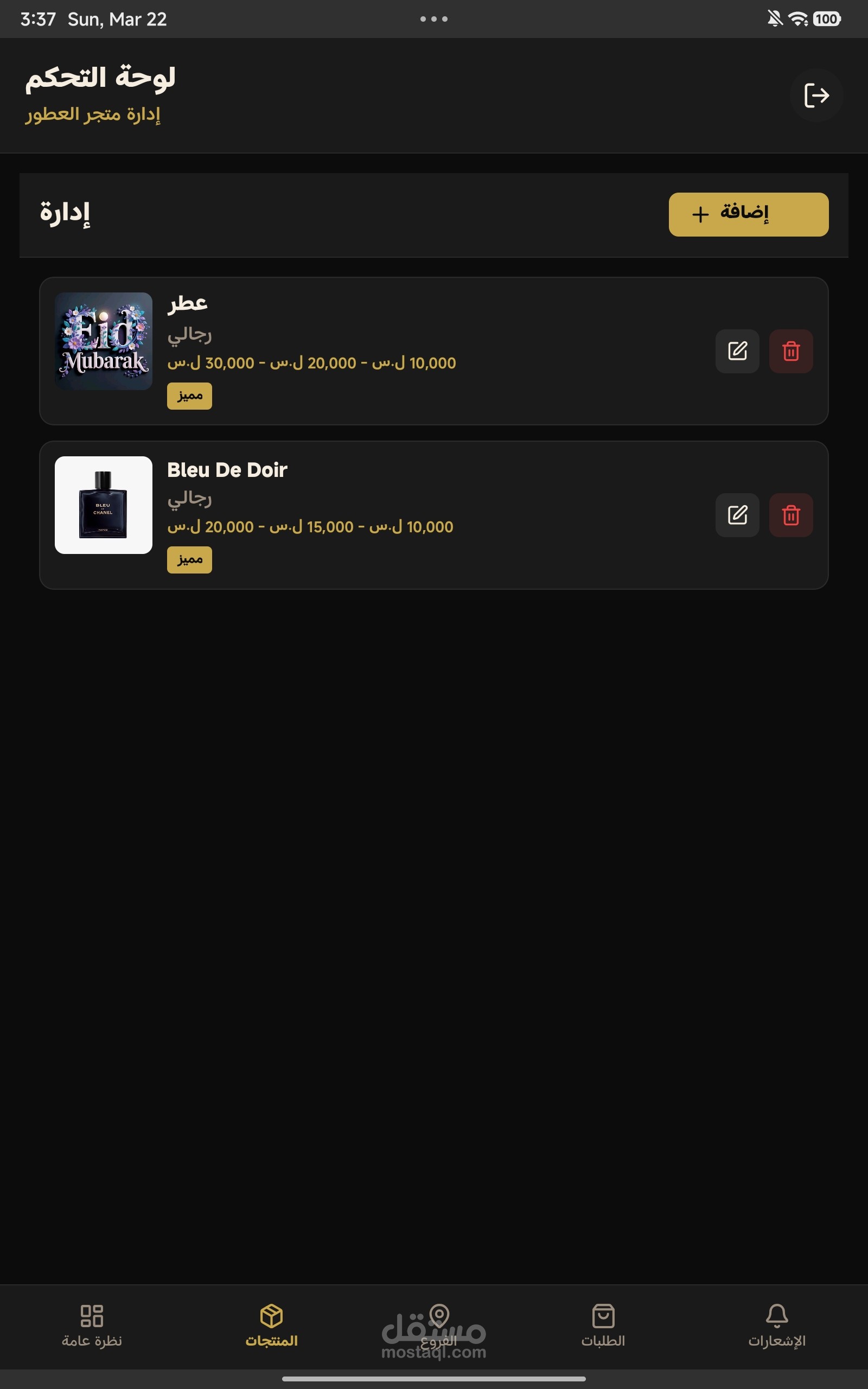 تطبيق أدارة متجر عطورات فيه ما يلي :