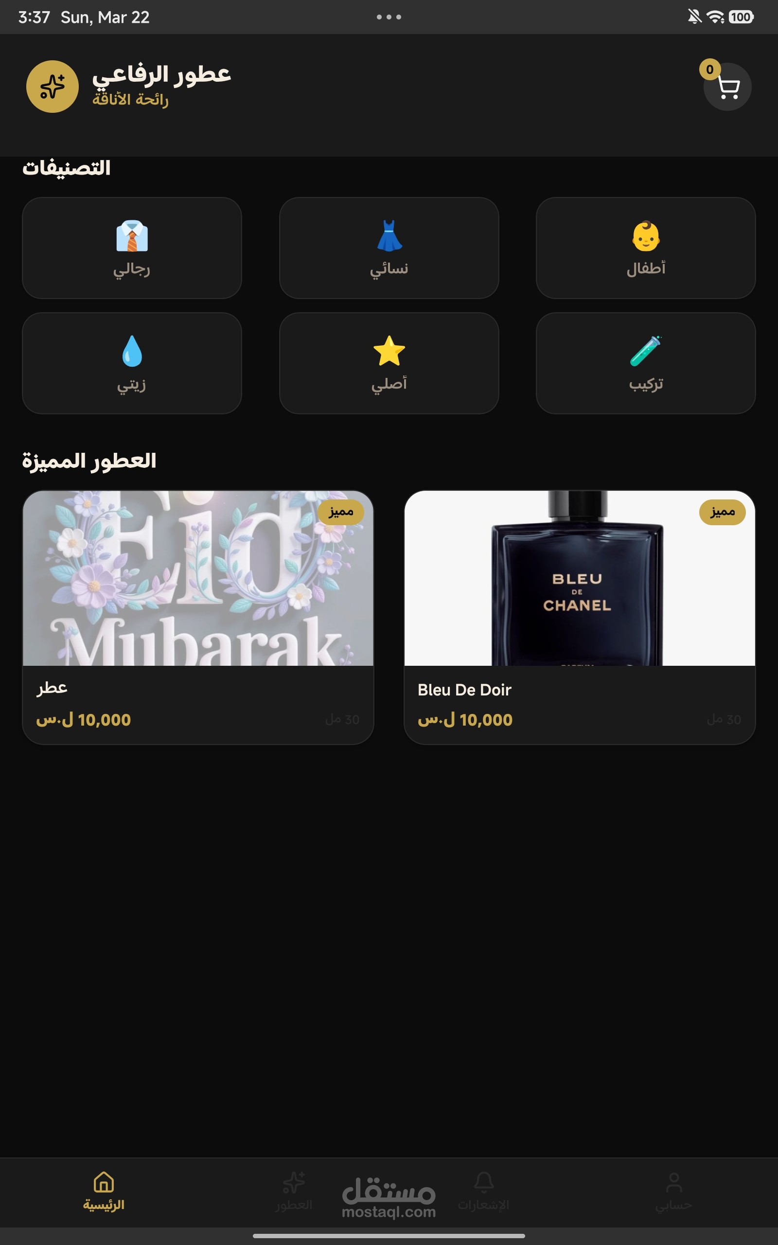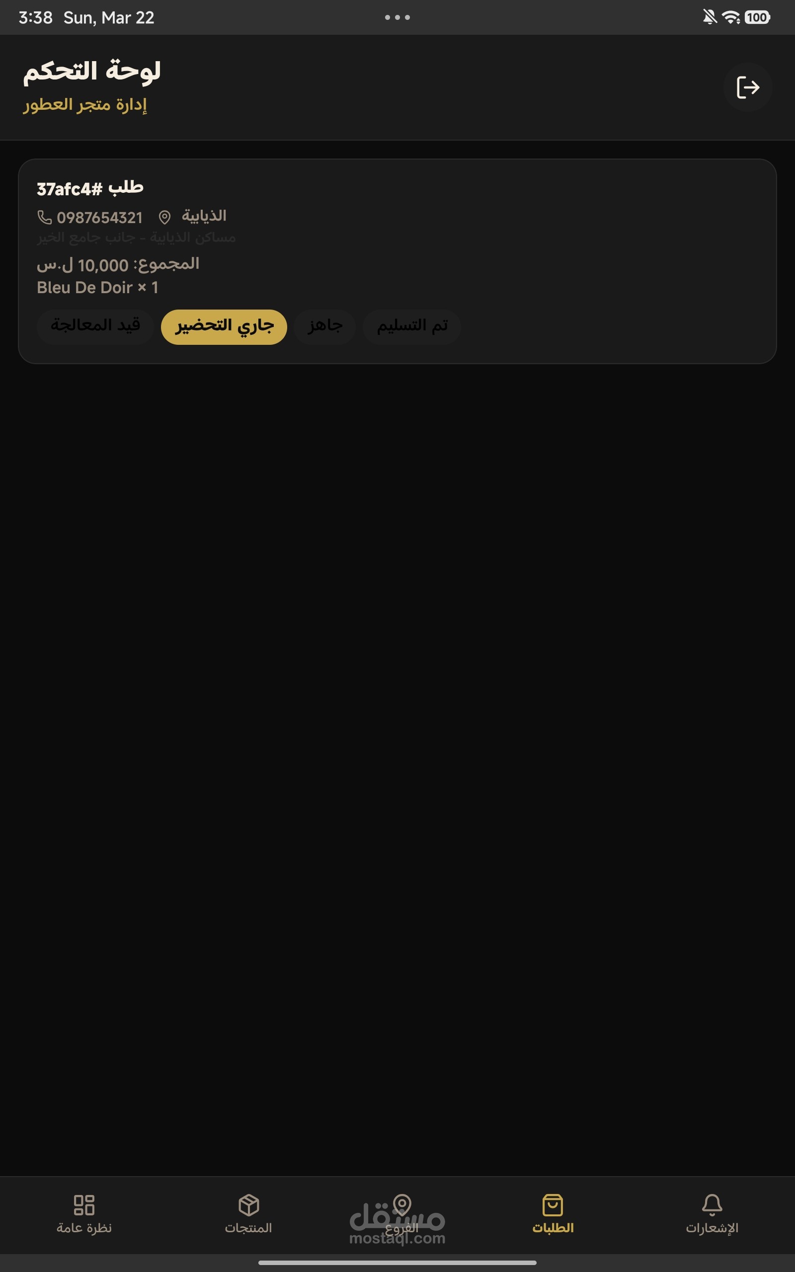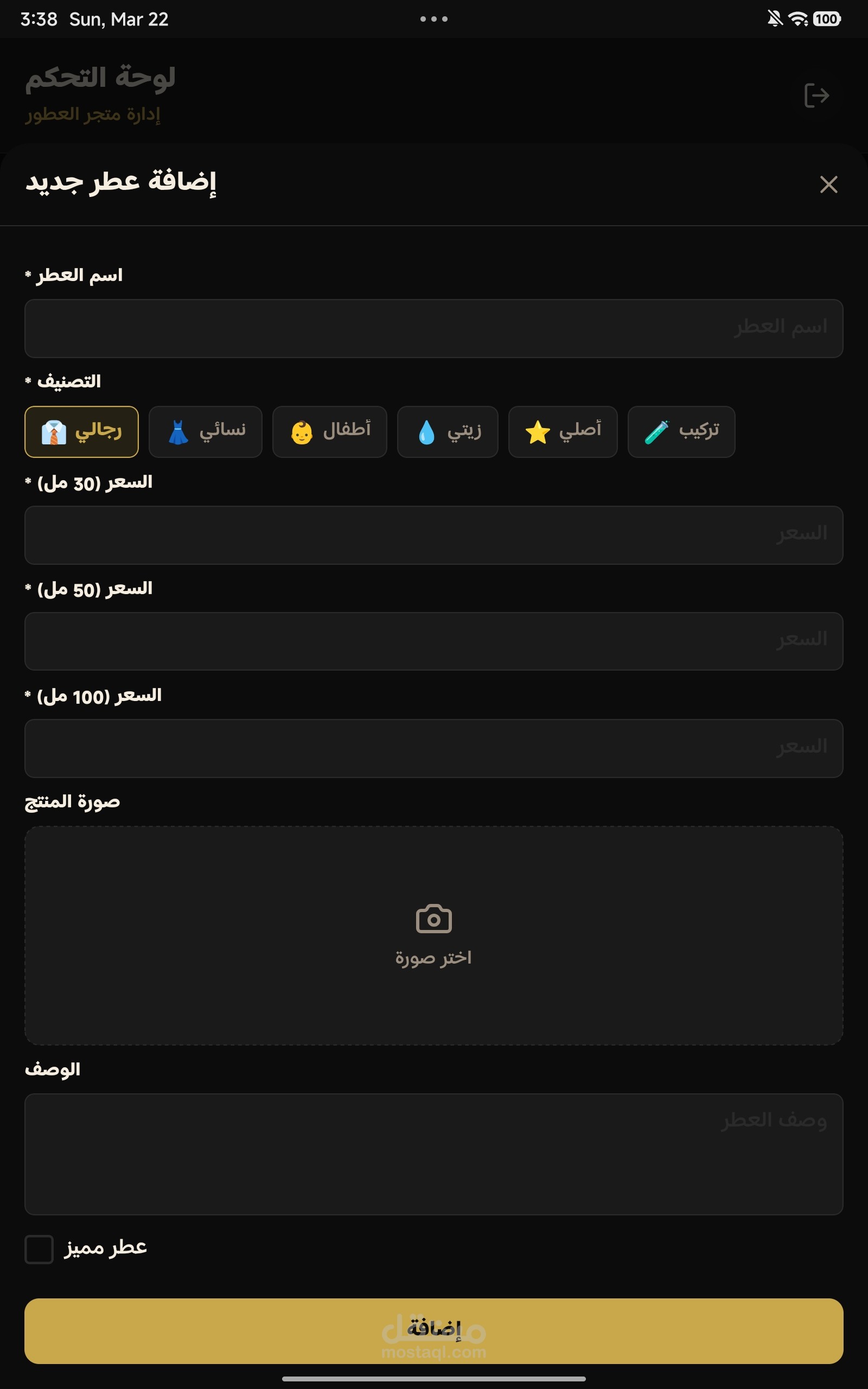 تطبيق أدارة متجر عطورات فيه ما يلي :