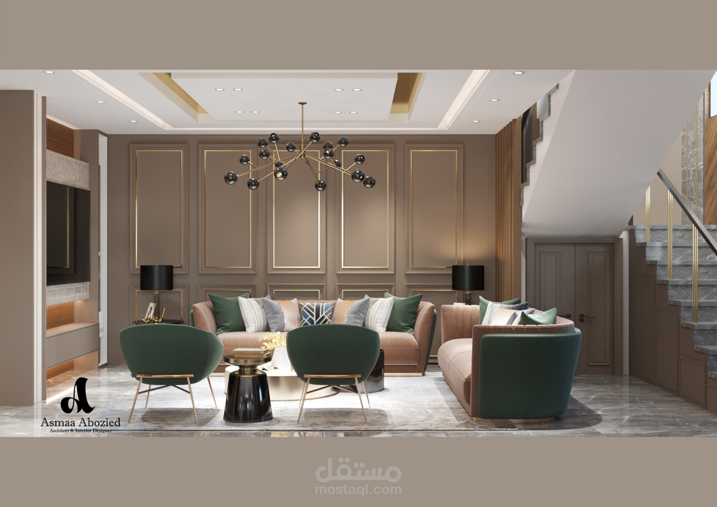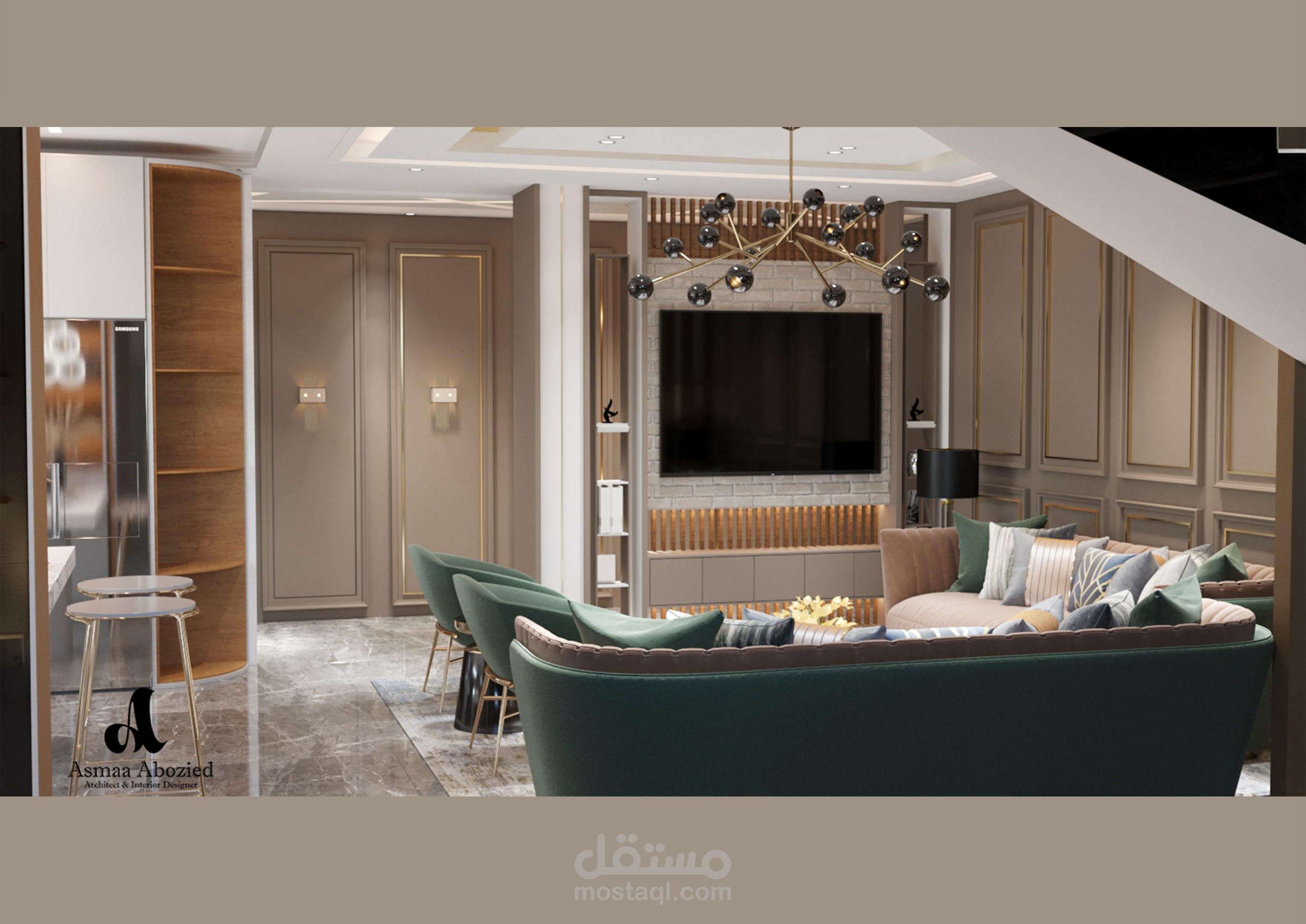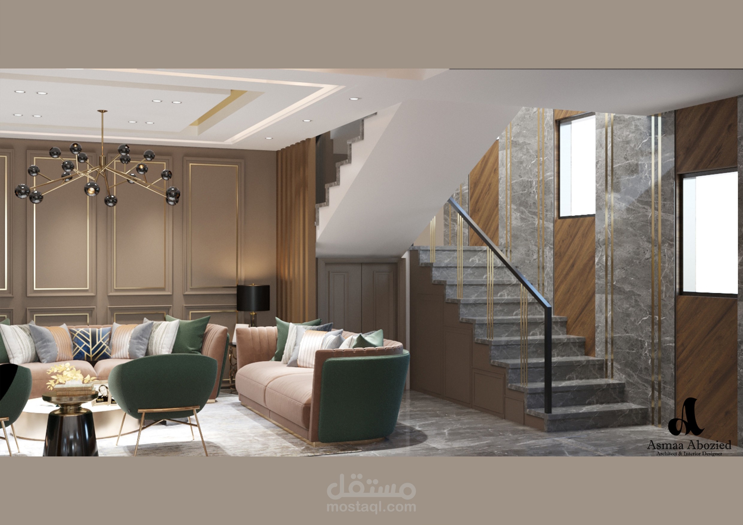 تصميم فراغ معيشة وممر وسلم لفيلة