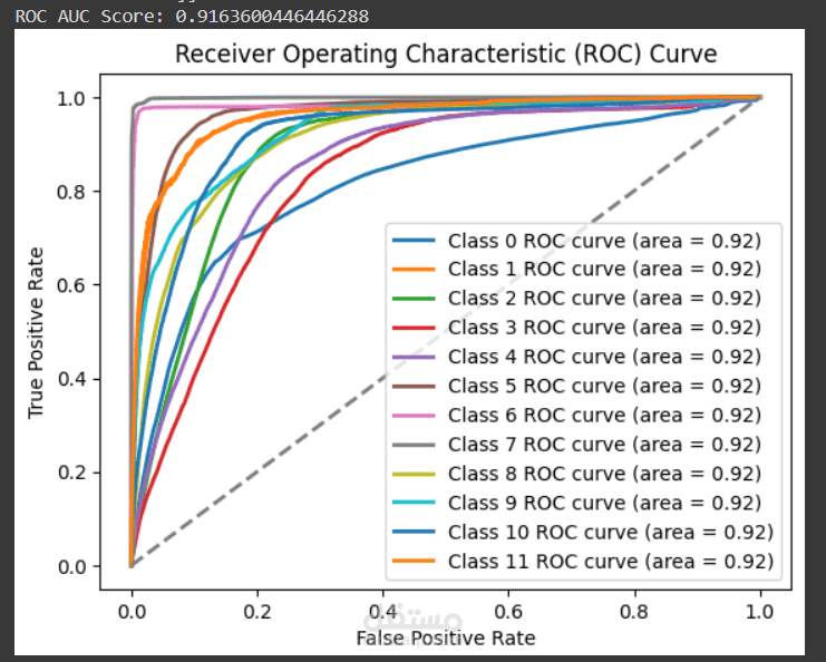 Analysis: Naive Bayes showed competitive performance with a ROC AUC score of 0.91, indicating good model discrimination. However, the accuracy of 68.9% suggests that while the model can differentiate between classes, it struggles with correct classifications for some activities. The simplicity of Naive Bayes makes it efficient, but it may not capture complex patterns in the data.