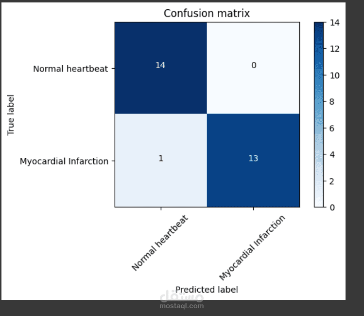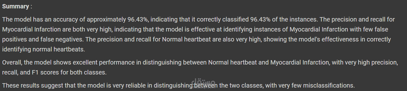 Electrocardiogram (ECG) recordings are critical for diagnosing various heart conditions. This project focuses on developing a classification model to distinguish between normal heartbeats and myocardial infarctions using ECG data. The dataset consists of 100 samples, each containing 96 data points representing the electrical activity recorded during one heartbeat.