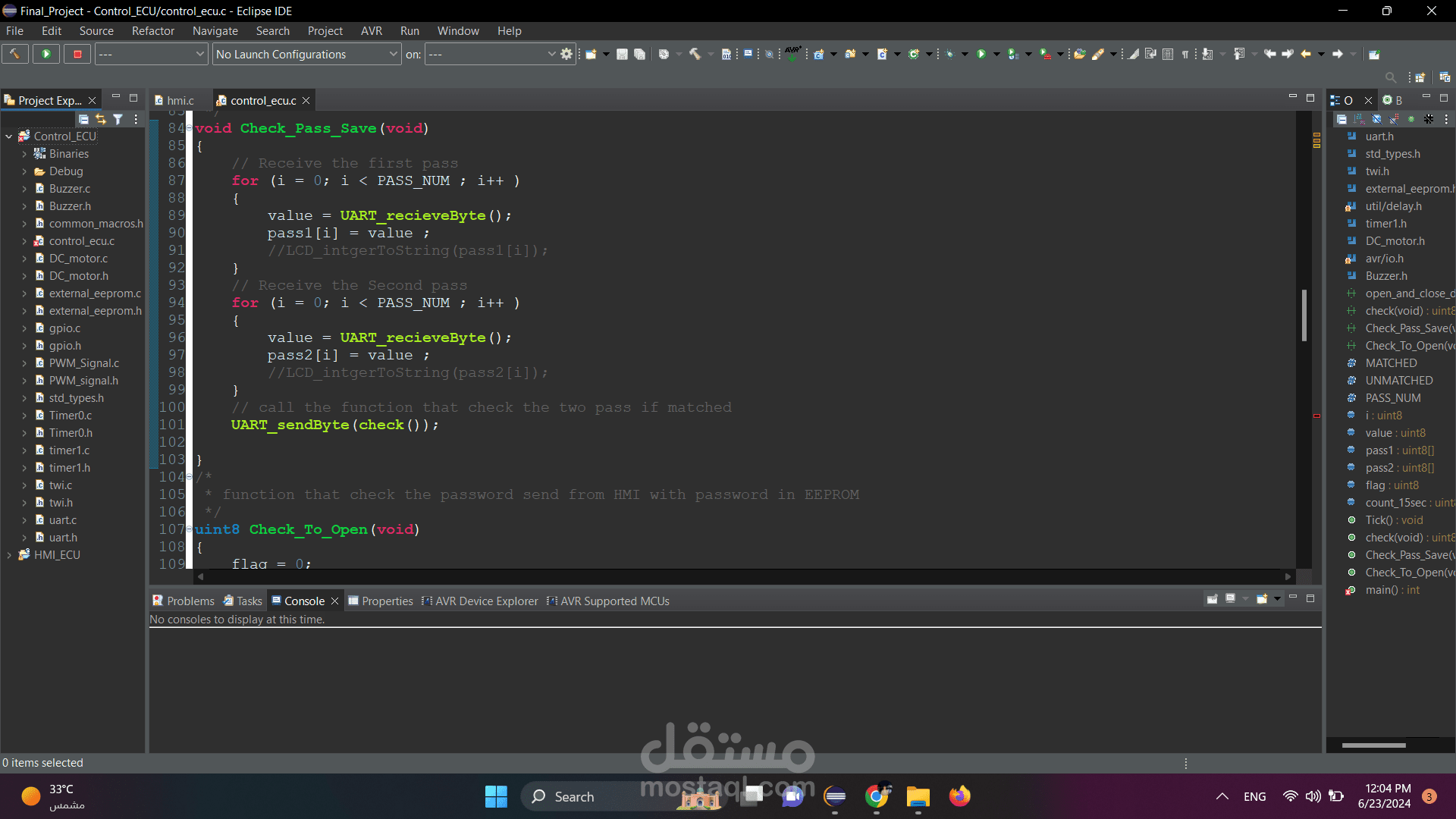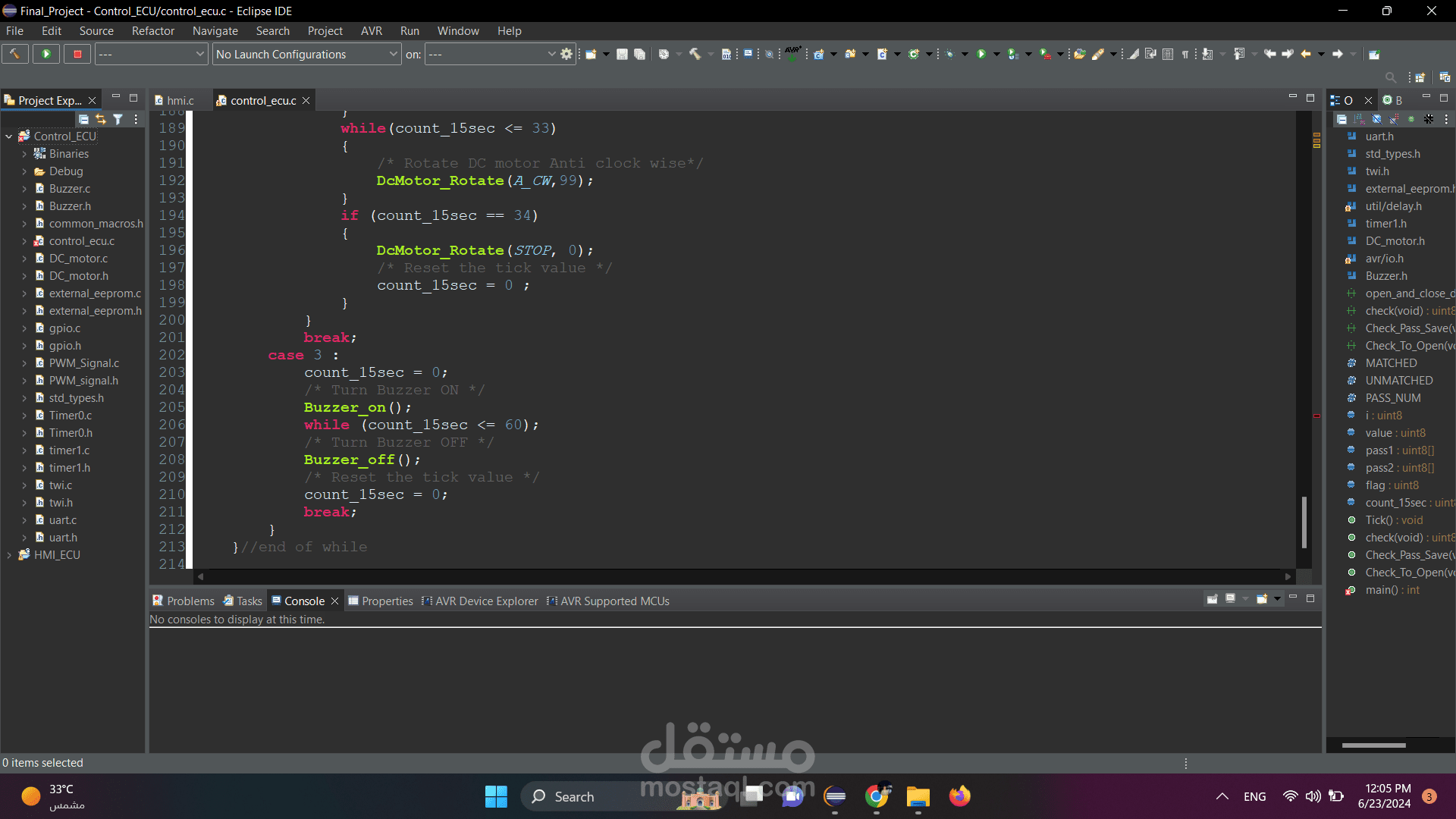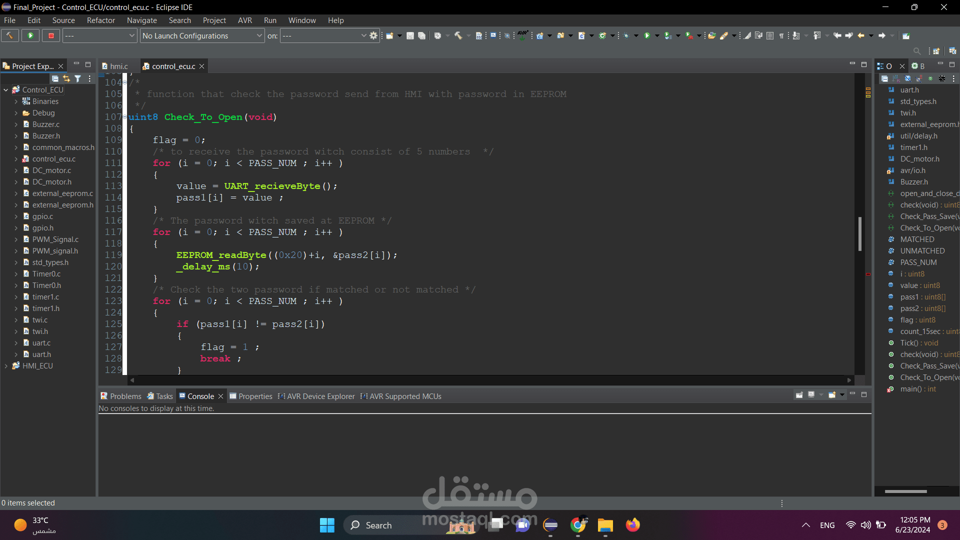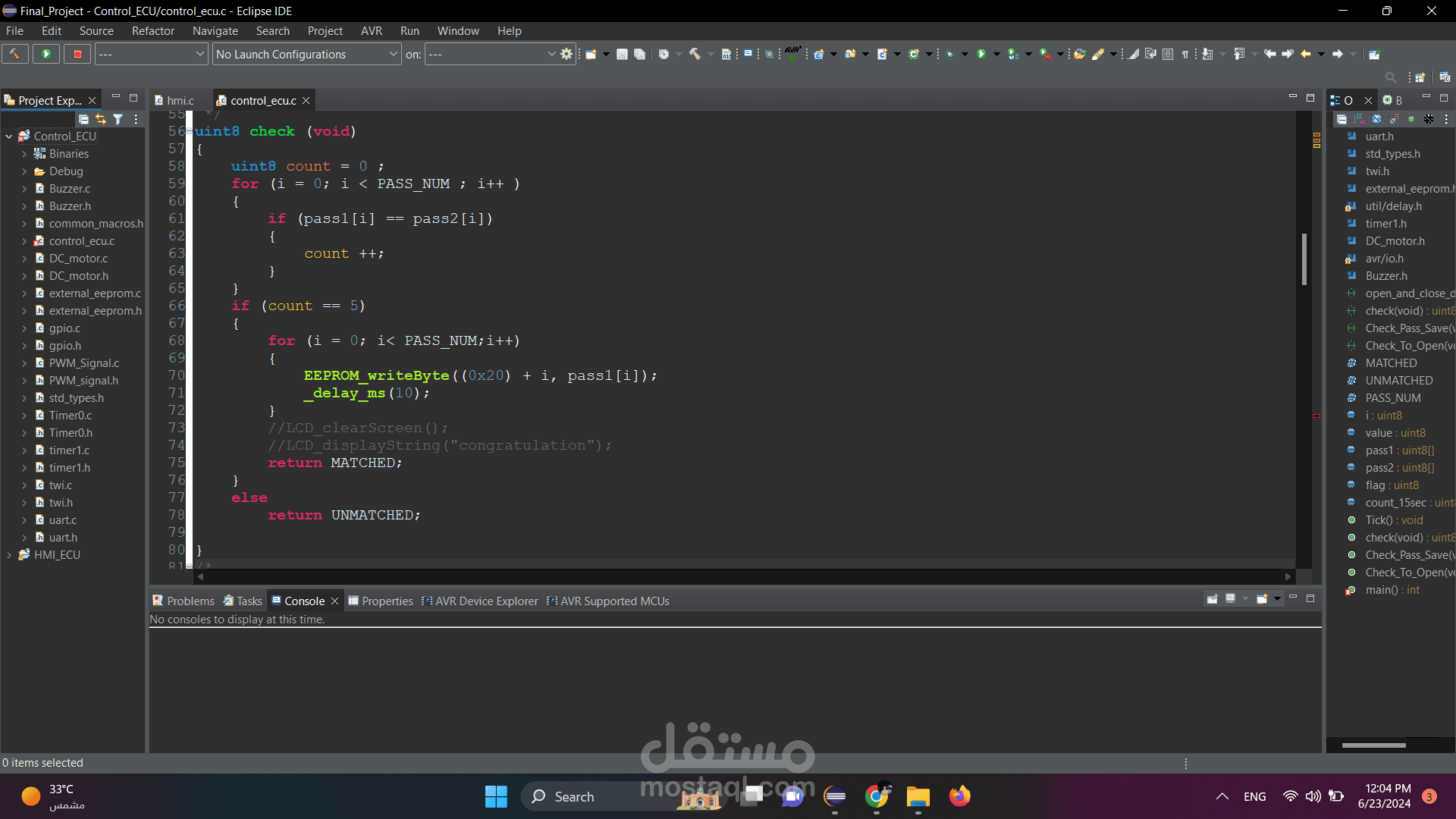 Drivers: GPIO, Keypad, LCD, Timer, UART, I2C, EEPROM, Buzzer and DC-Motor - Microcontroller: ATmega32.