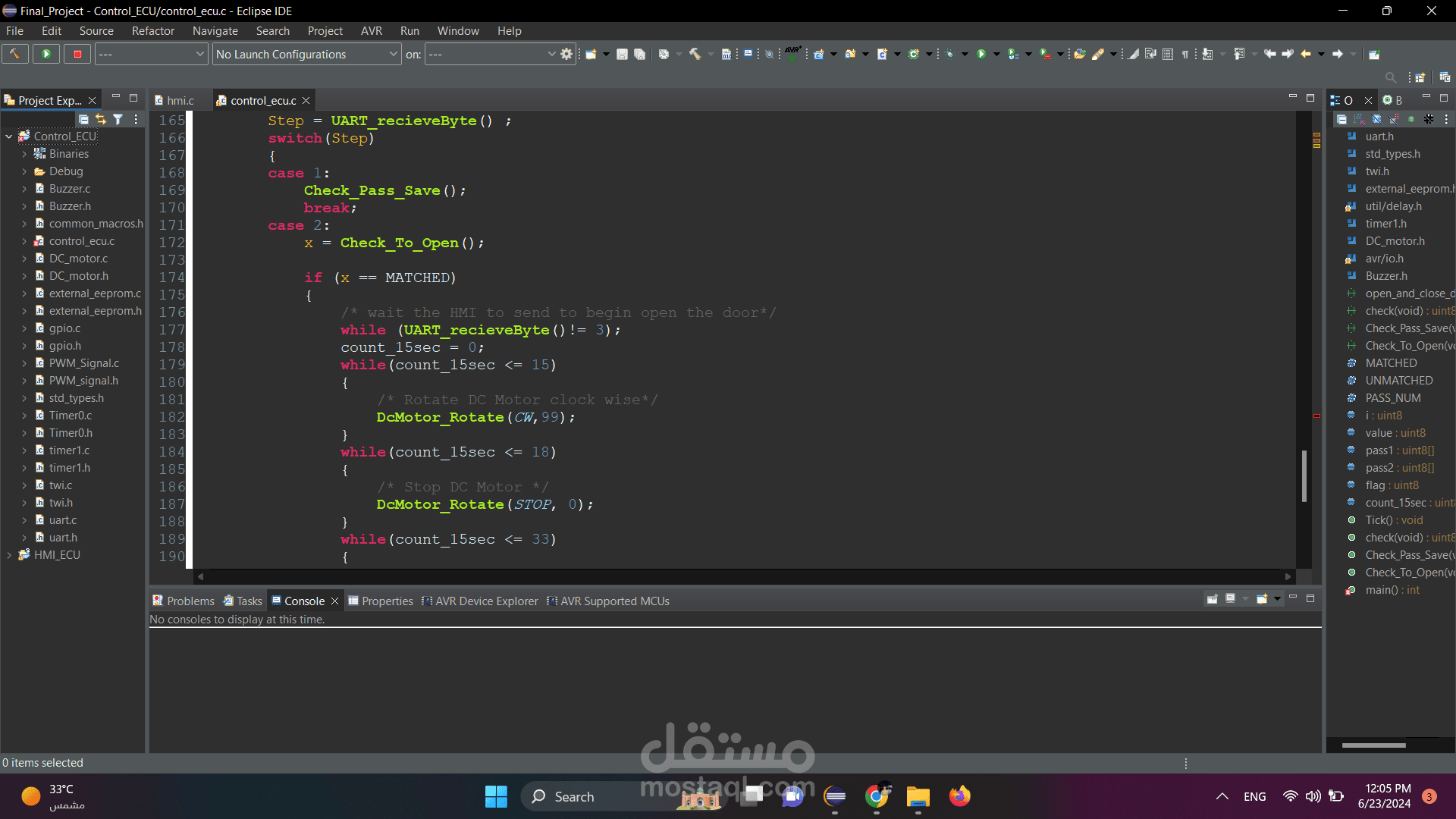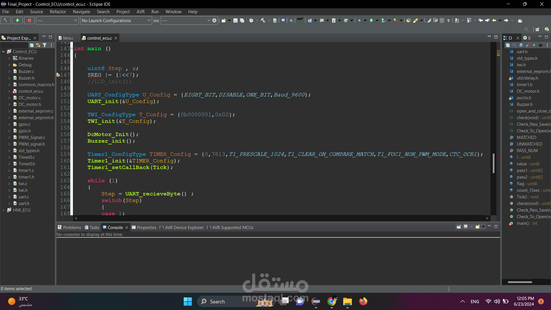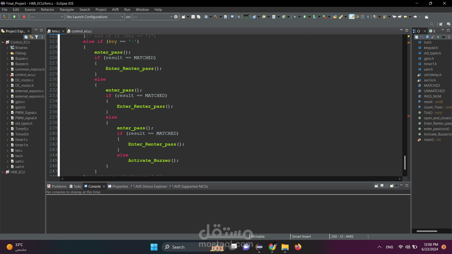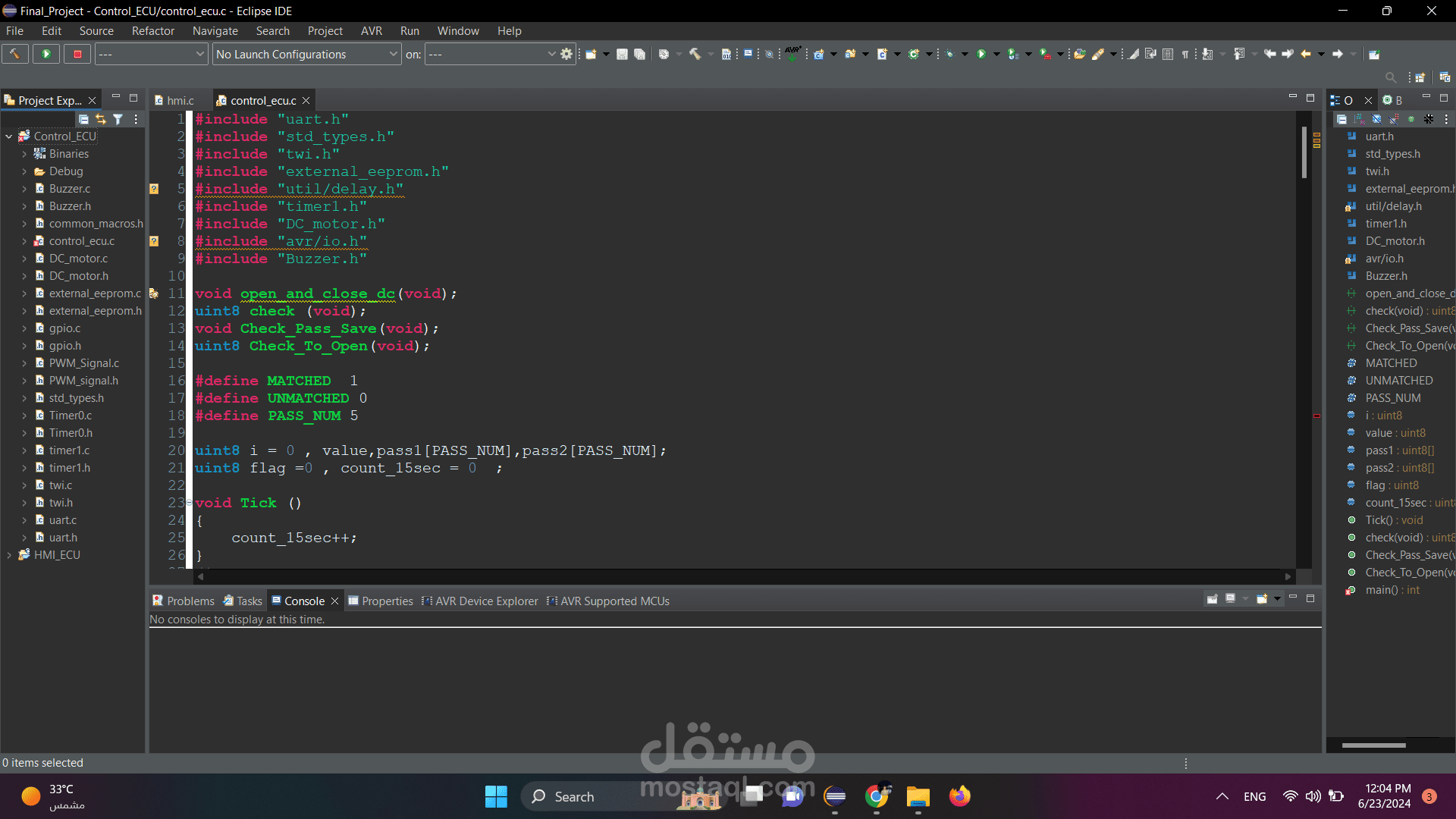 Drivers: GPIO, Keypad, LCD, Timer, UART, I2C, EEPROM, Buzzer and DC-Motor - Microcontroller: ATmega32.