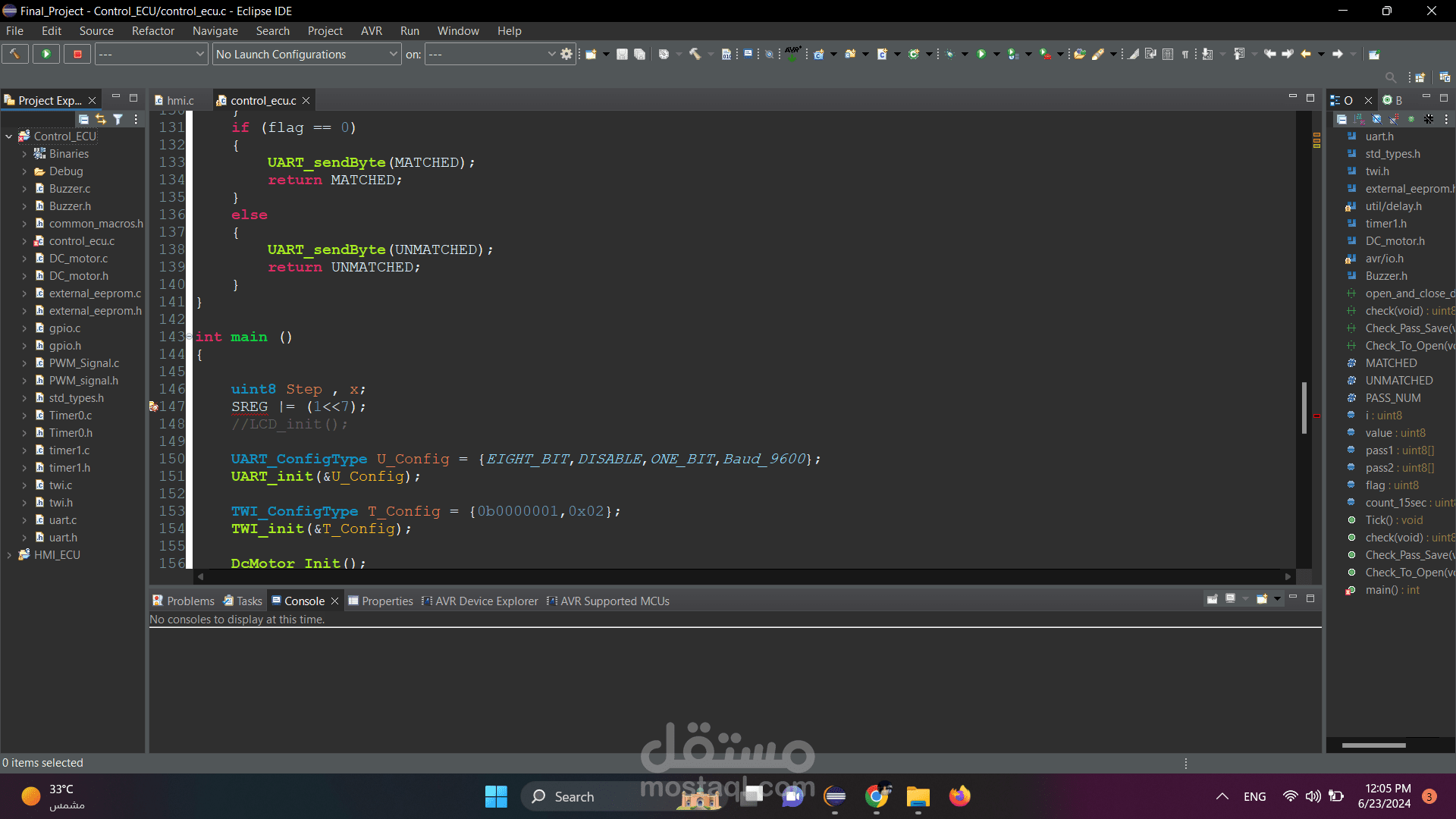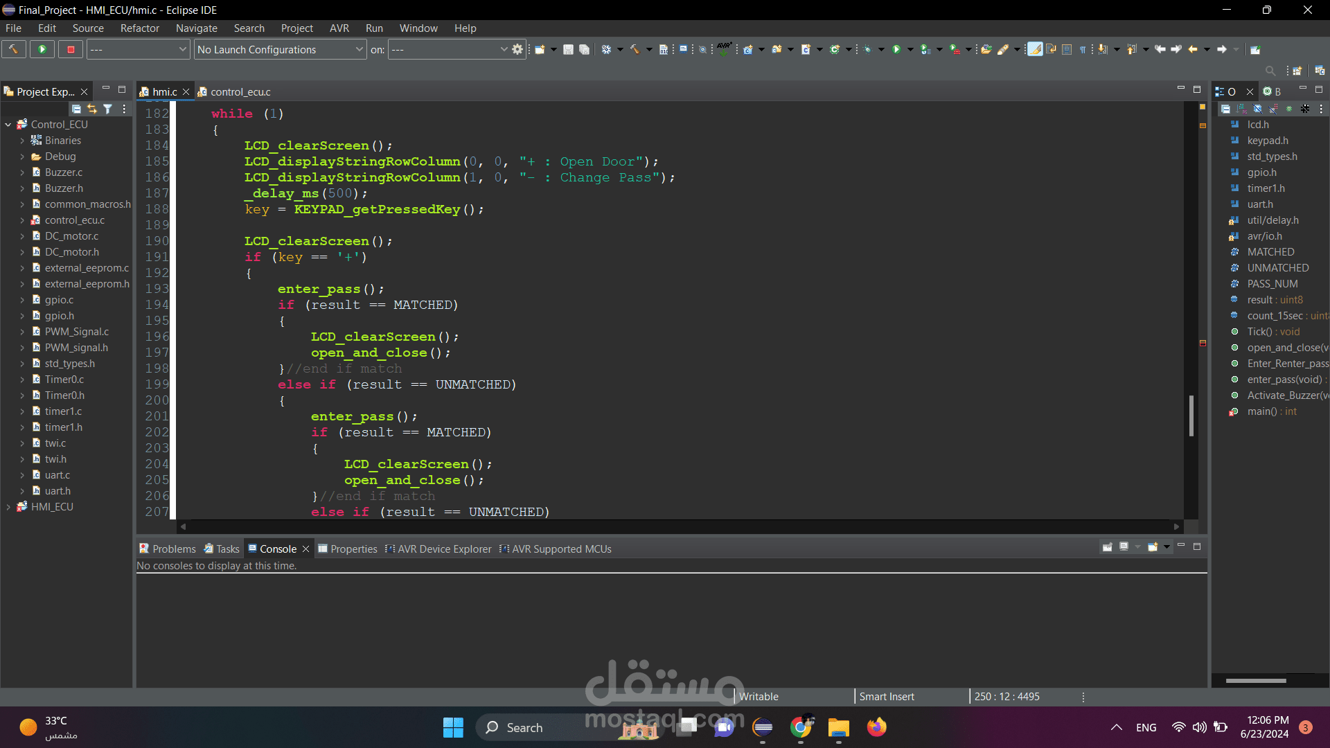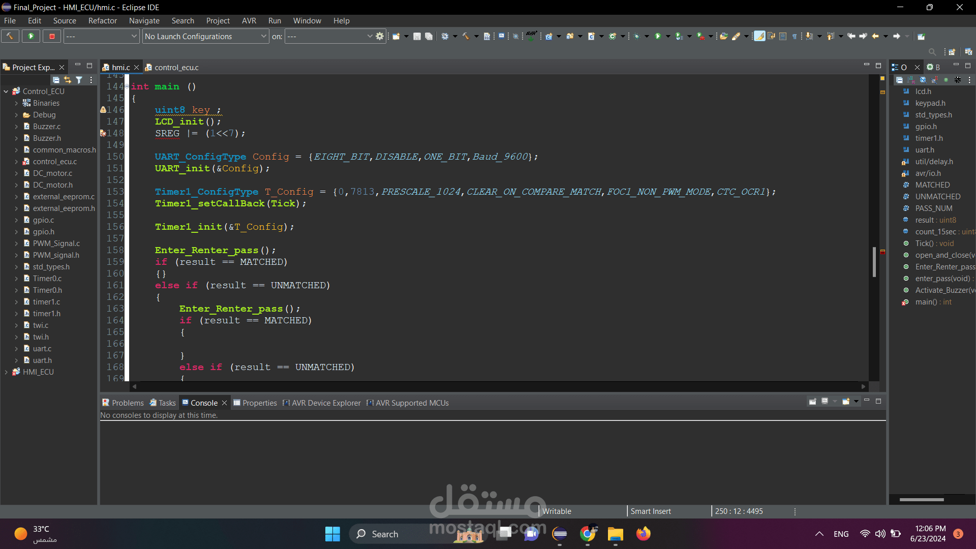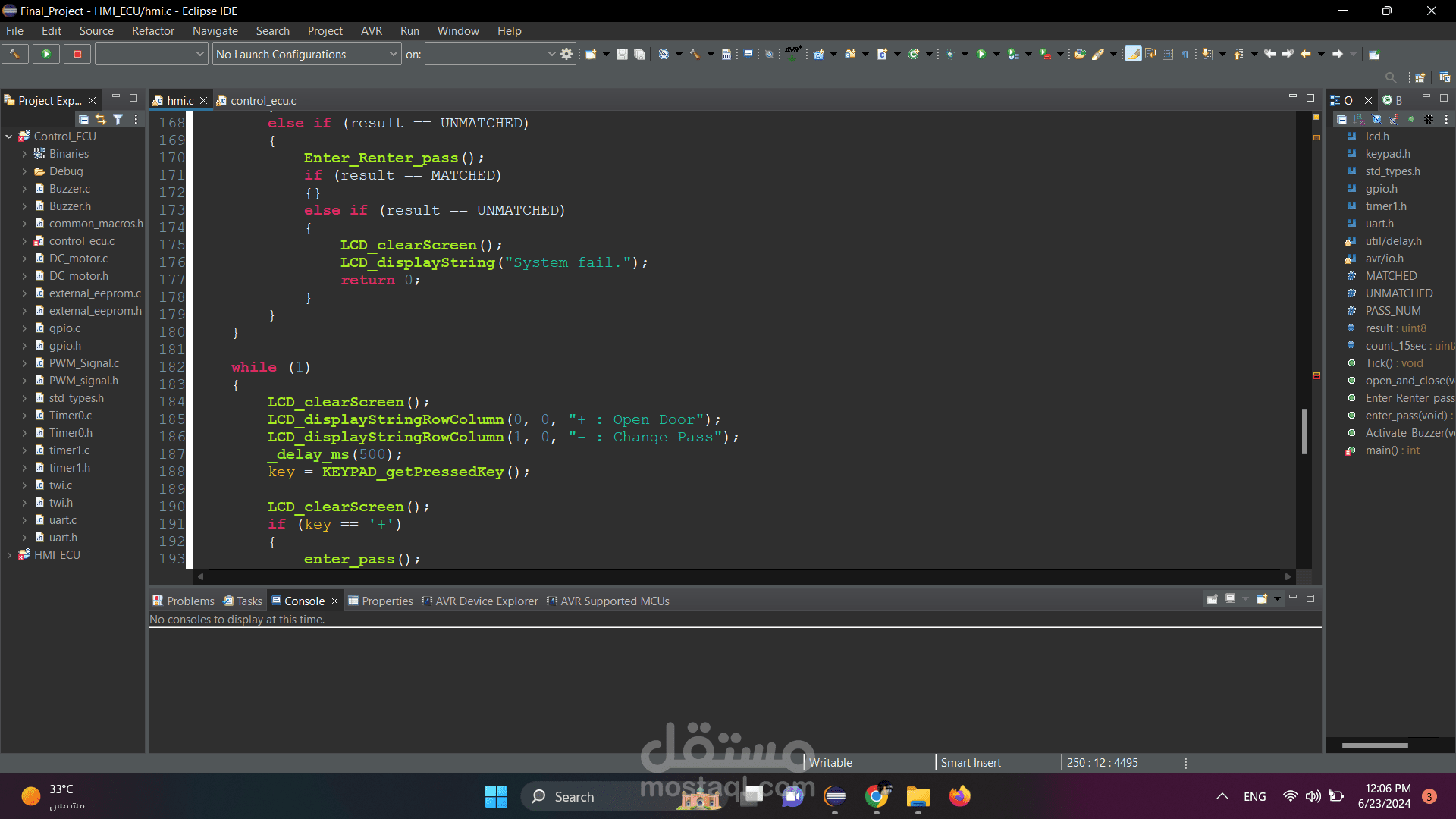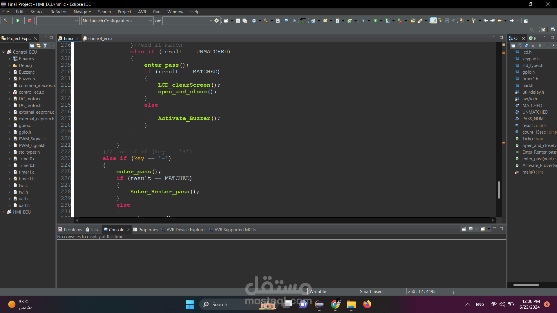 Drivers: GPIO, Keypad, LCD, Timer, UART, I2C, EEPROM, Buzzer and DC-Motor - Microcontroller: ATmega32.