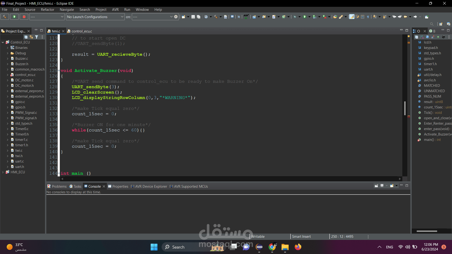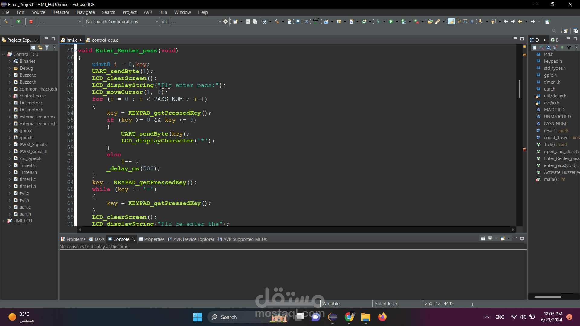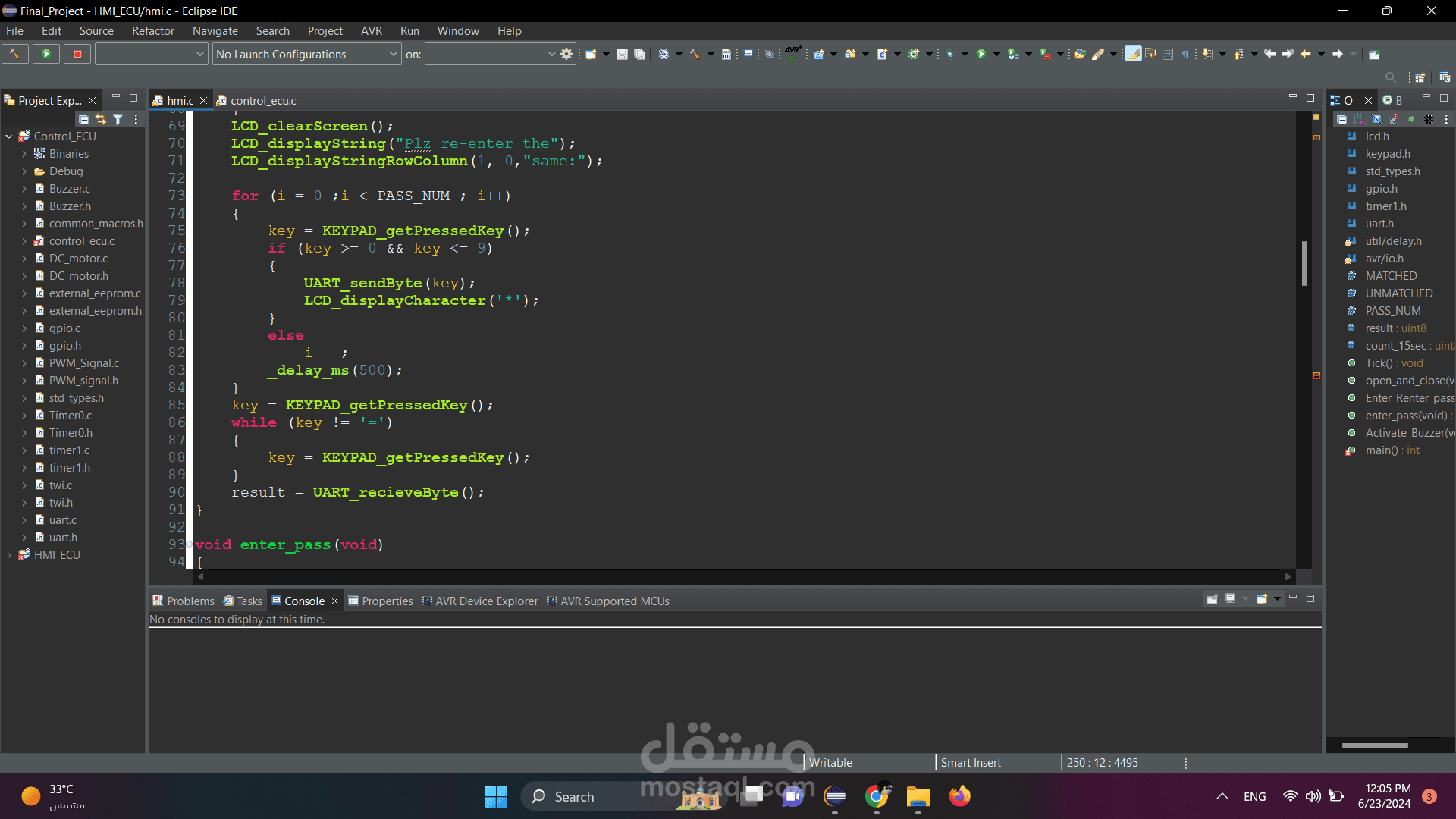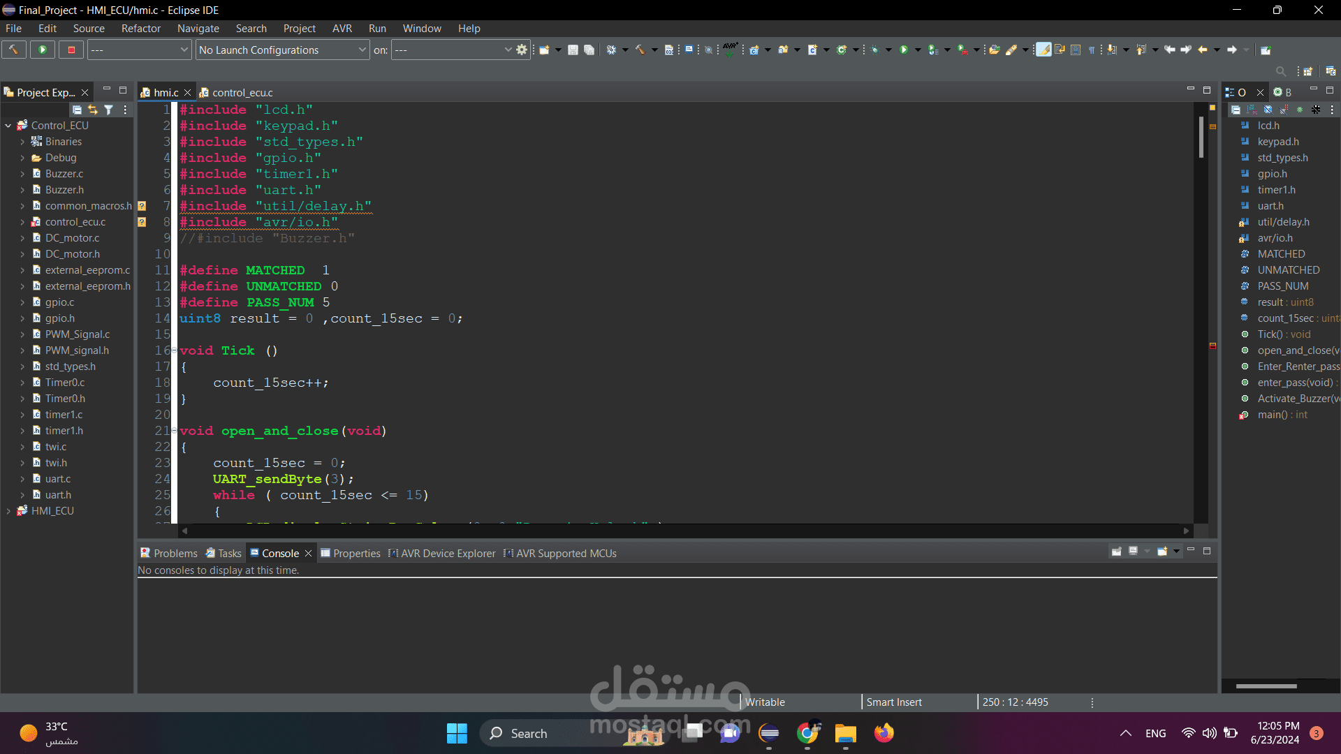 Drivers: GPIO, Keypad, LCD, Timer, UART, I2C, EEPROM, Buzzer and DC-Motor - Microcontroller: ATmega32.