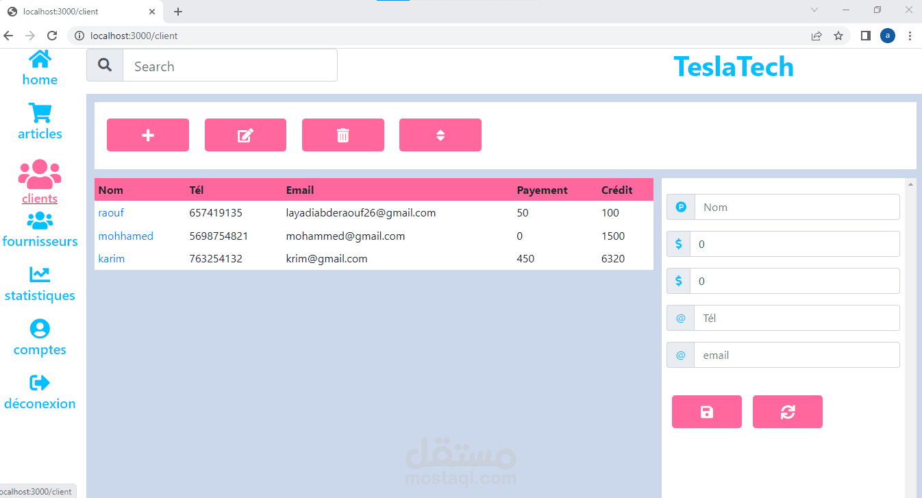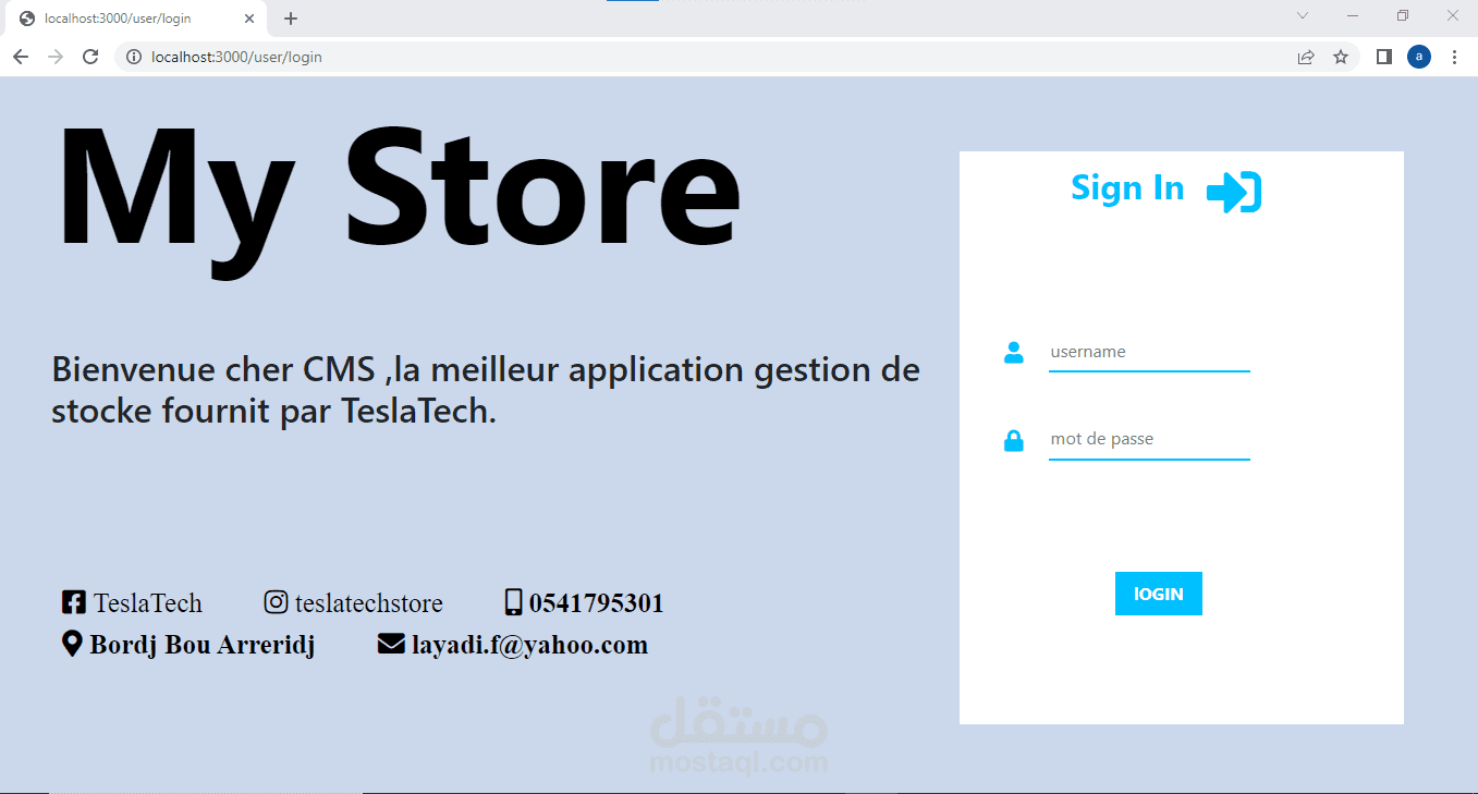 المشروع تم تطويره بواسطة javscript و nodejs و قواعد بيانات mongoDB
