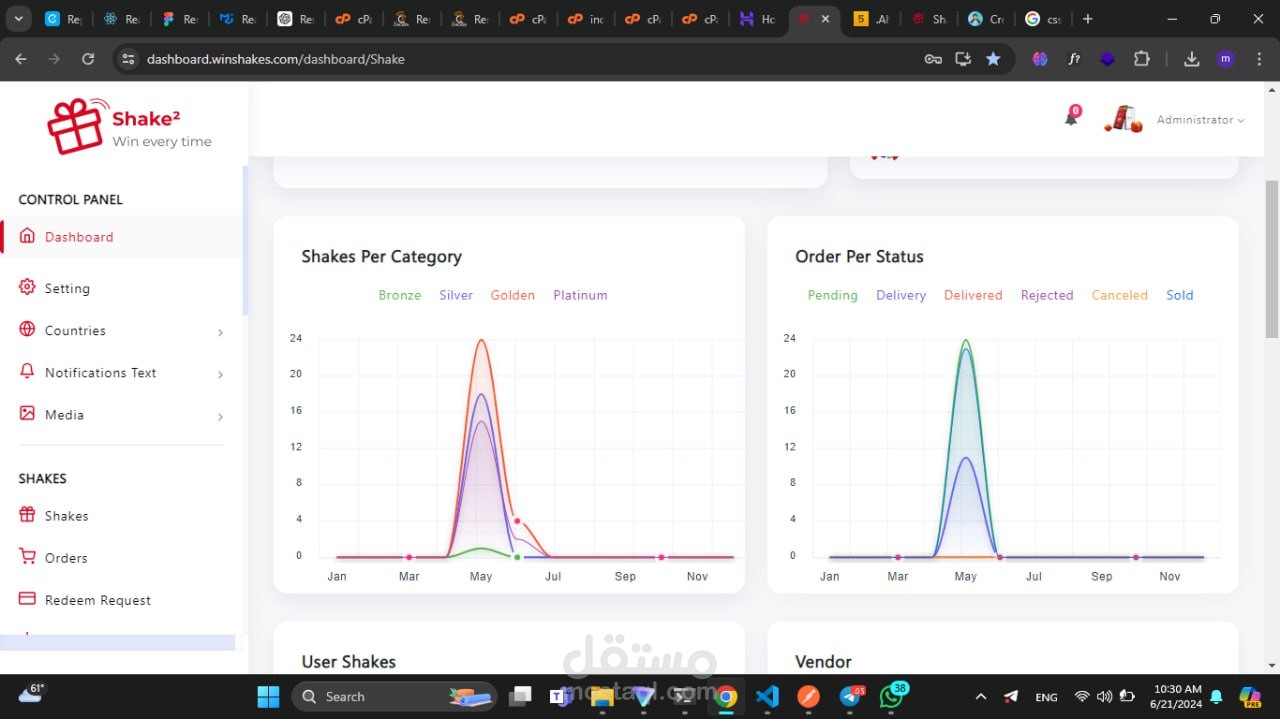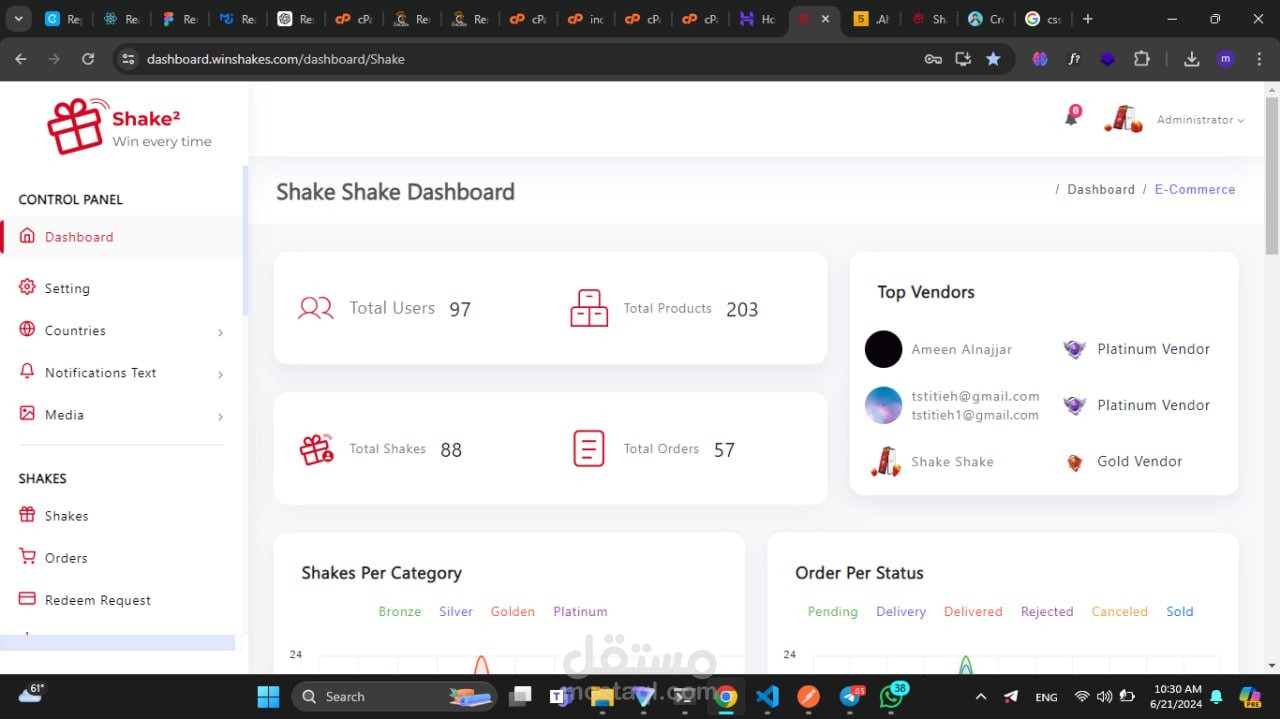8-عرض إحصائيات الكاملة للموقع عدد عمليات ال shake و الطلبات orders, عدد المستخدمين المتصلين الآن