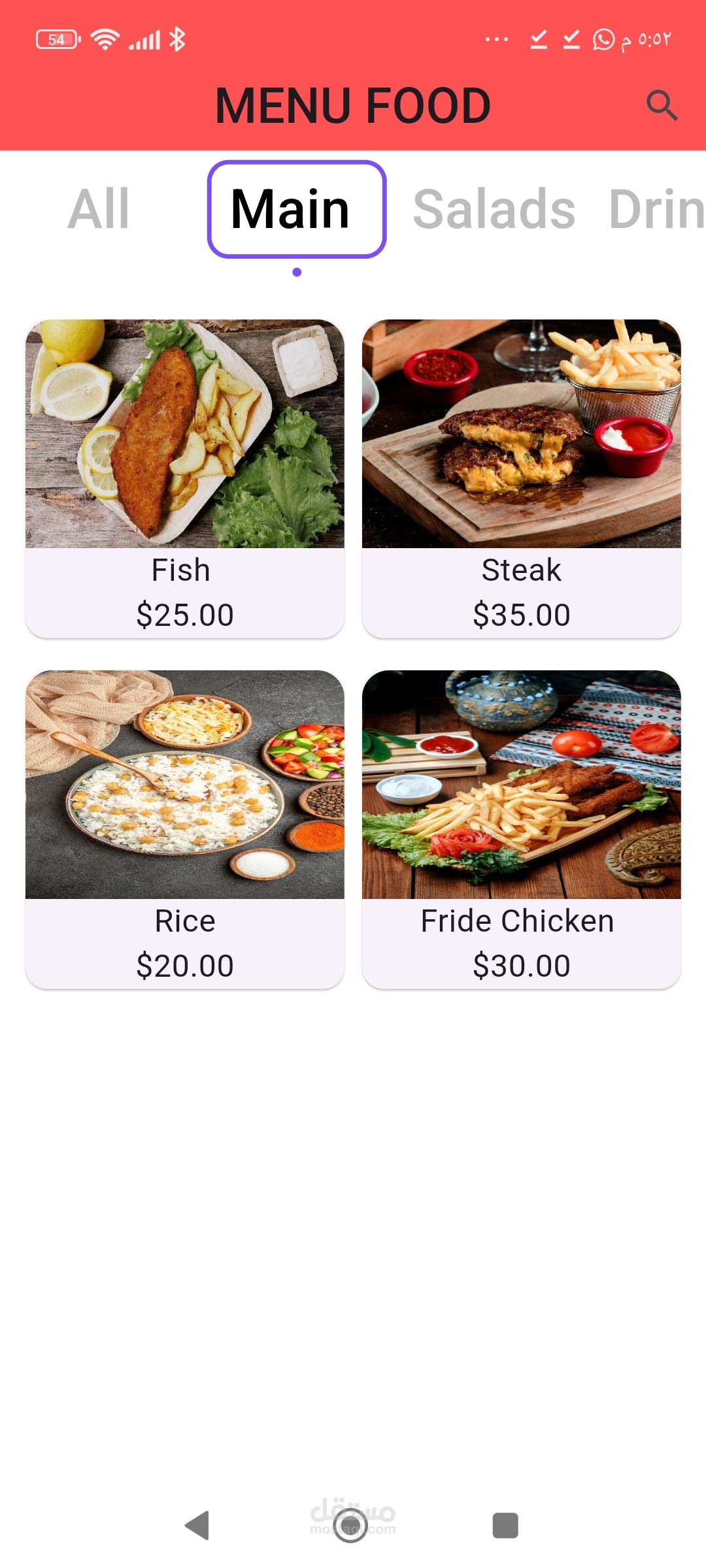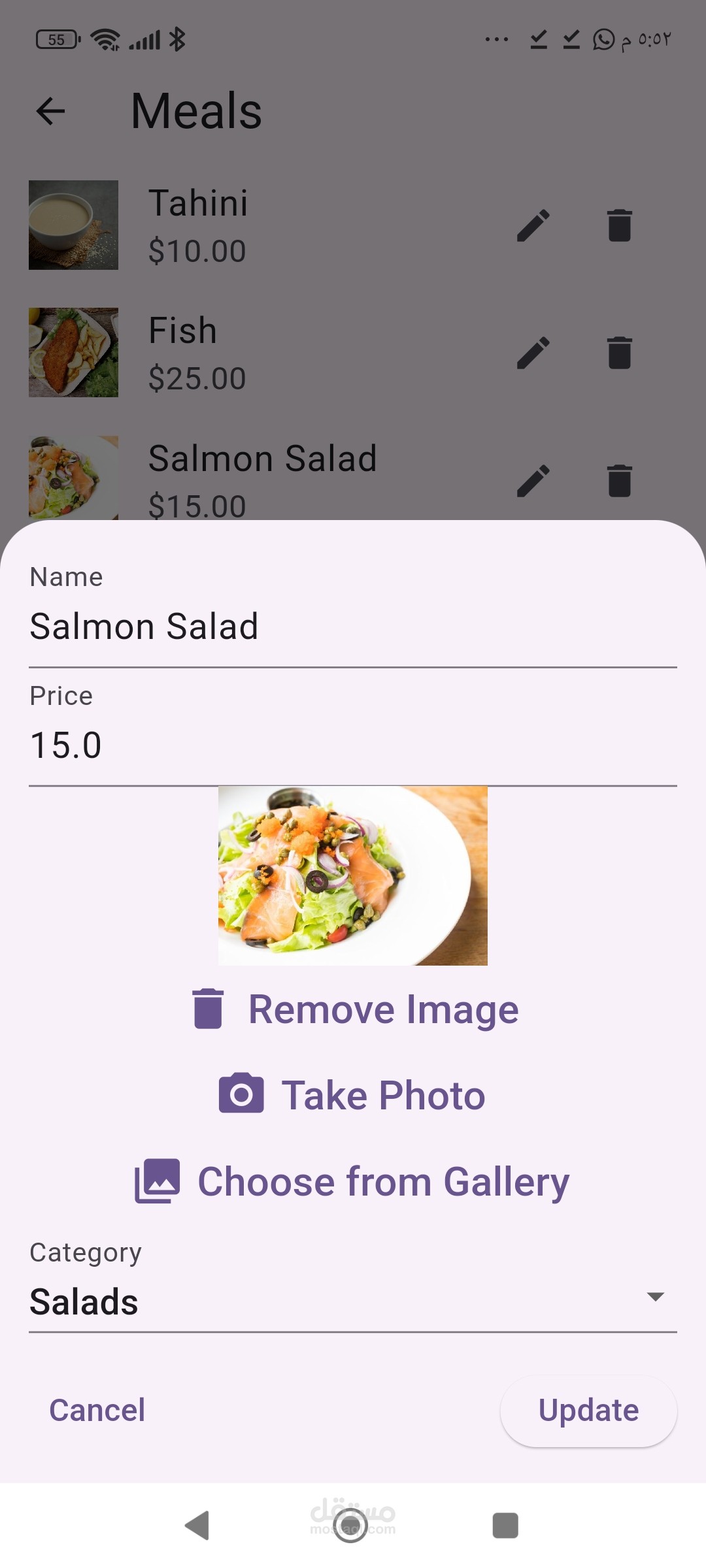 تطبيق مينيو متكامل مرتبط بقاعدة بيانات فاير بيز مع لوحة تحكم