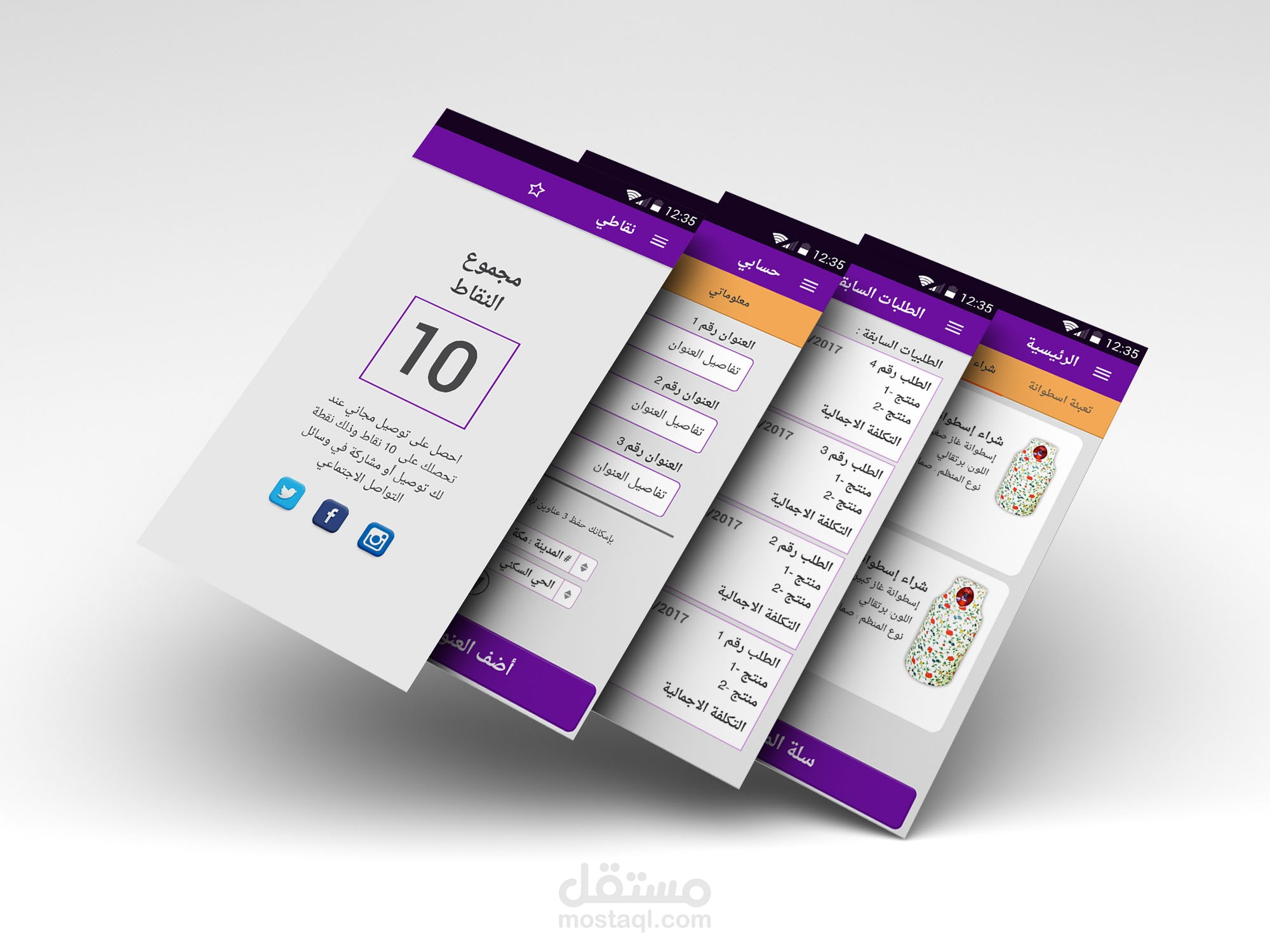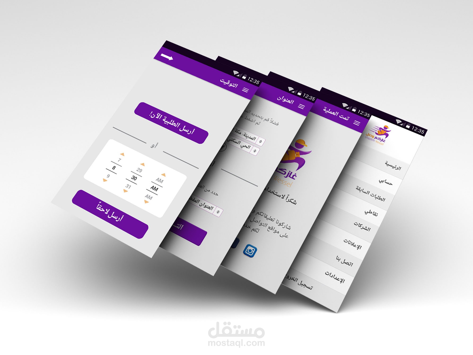 تصميم تطبيق متكامل + الشعار + ايقونة التطبيق + شاشات التطبيق