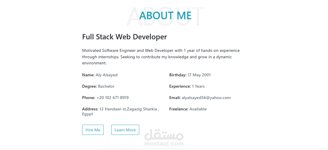 Hero Section: Includes a welcoming message, background image, and essential details like my name and a brief introduction.