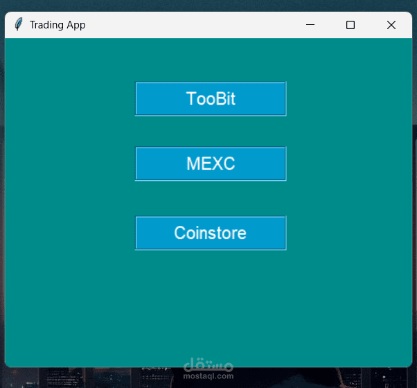 ديسكتوب ابلكيشن بلغة البايثون مصمم لعمل تريدنج تلقائي باستخدام "API" الخاص بالمواقع الاتية (Toobit / Mecx / Coinstore)