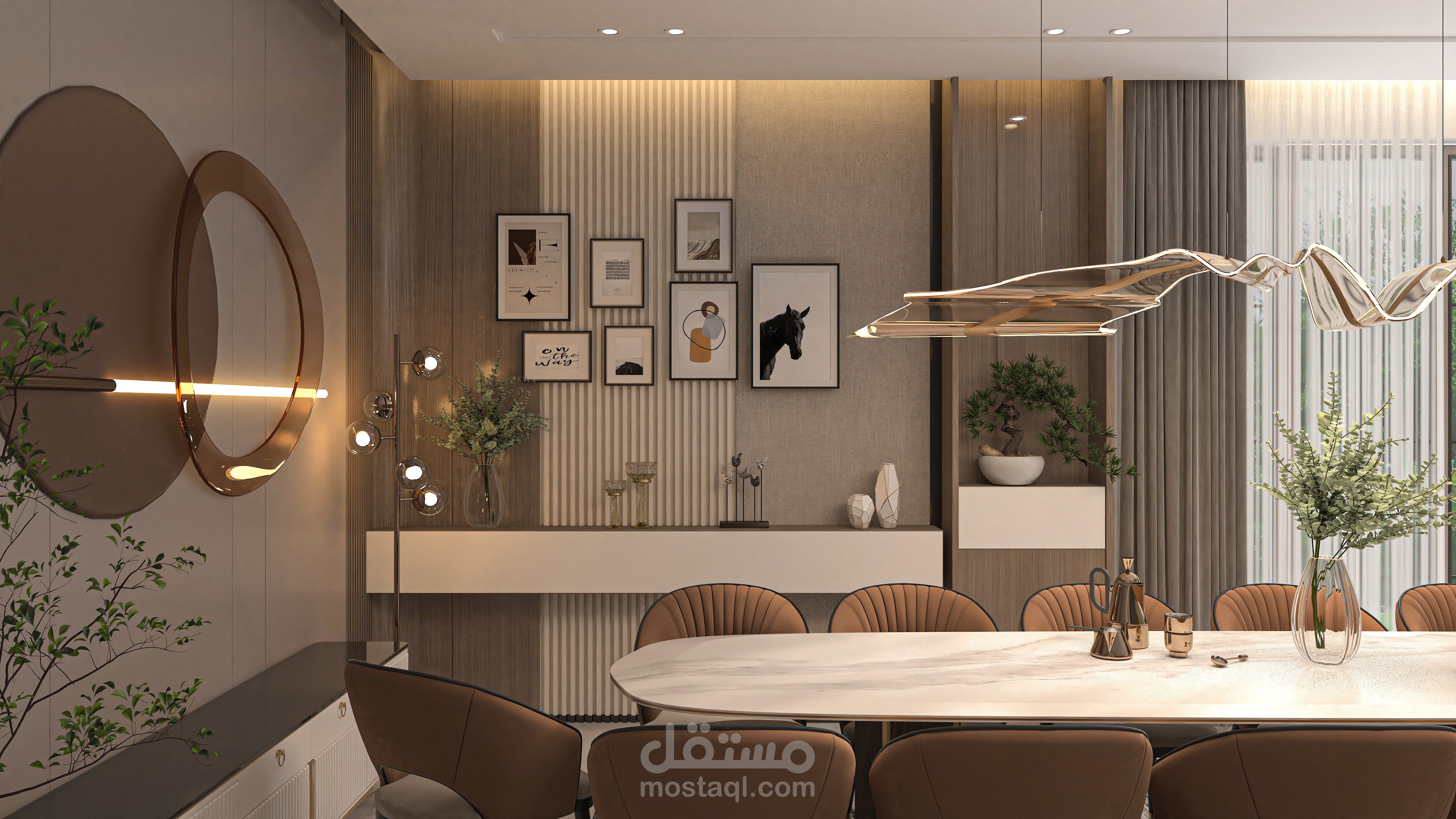 تصميم dining room ، البرامج المستخدمة هي 3ds max و lumion و Photoshop
