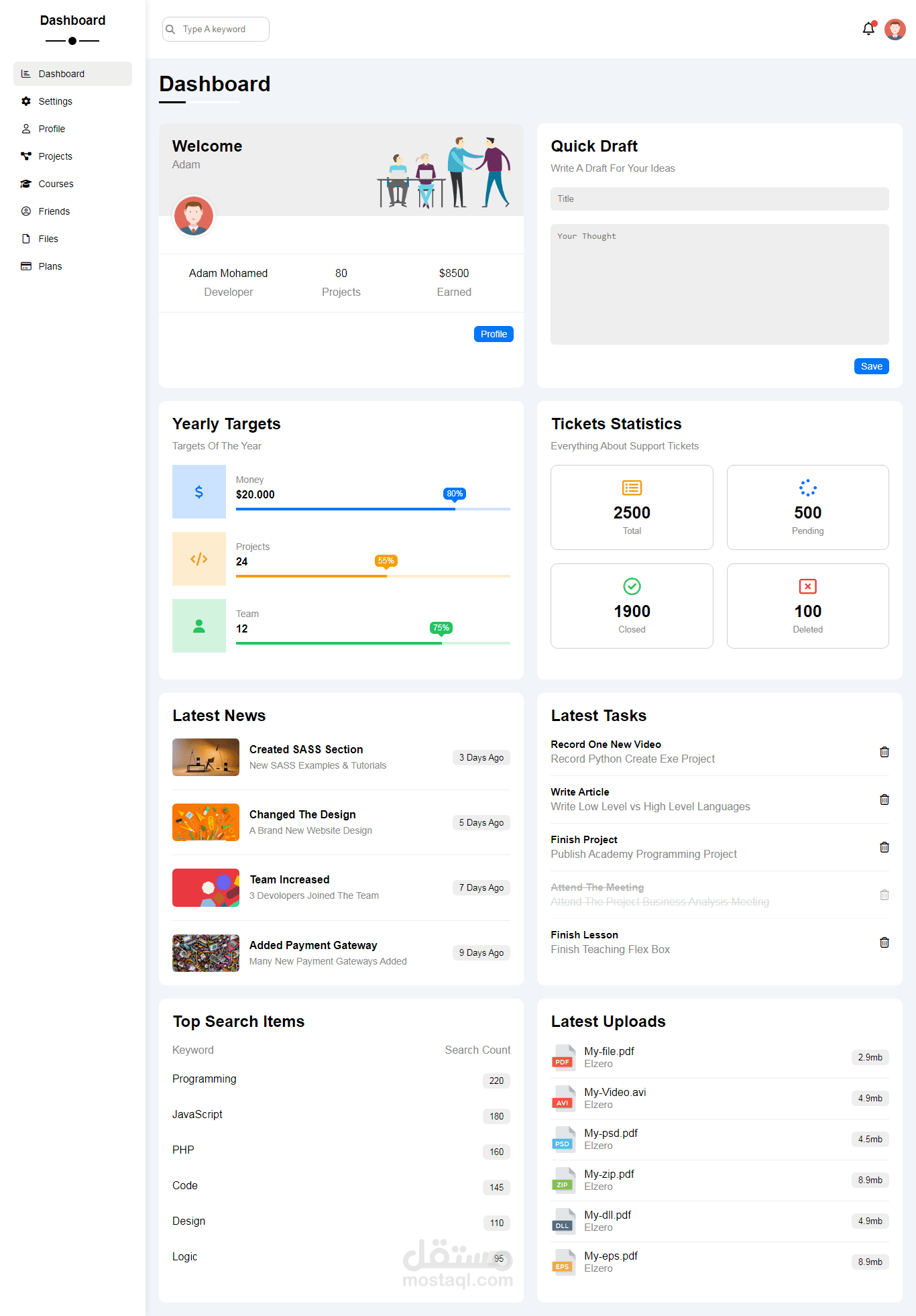 يمكنك تنظيم خطط في Dashboard بكل سهولة ورفع ملفات .