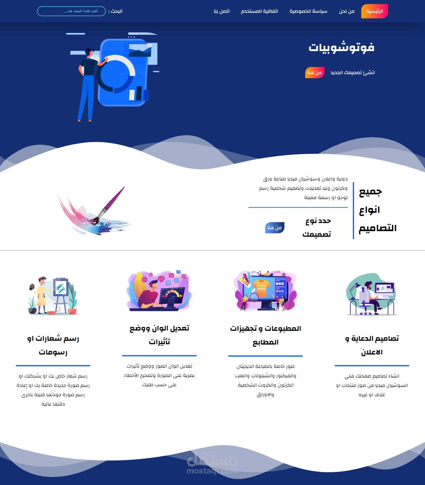 يبدا الموقع بشرح جميع التصميم الذي يريده مثل الدعاية والاعلانات المطبوعات و تجهيزات المطابع و تعديل الوان ووضع تأثيرات و رسم شعارات او رسومات .