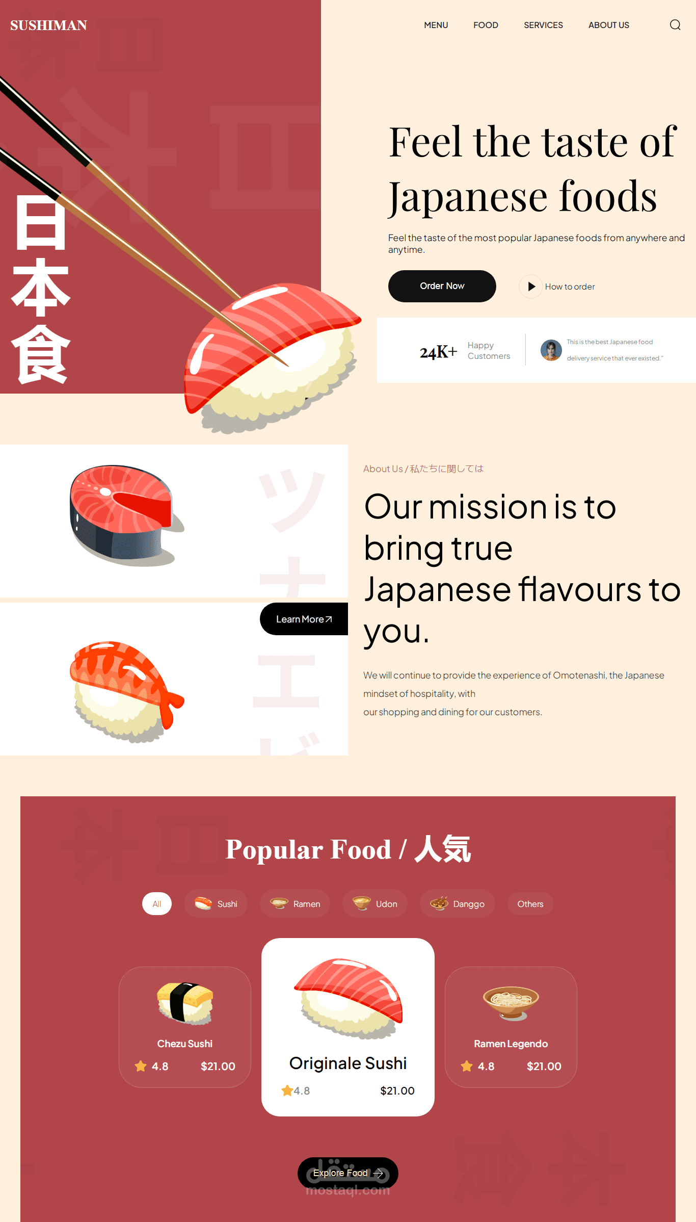 يتحدث الموقع عن بيع السوشي والماكولات اليابانية .