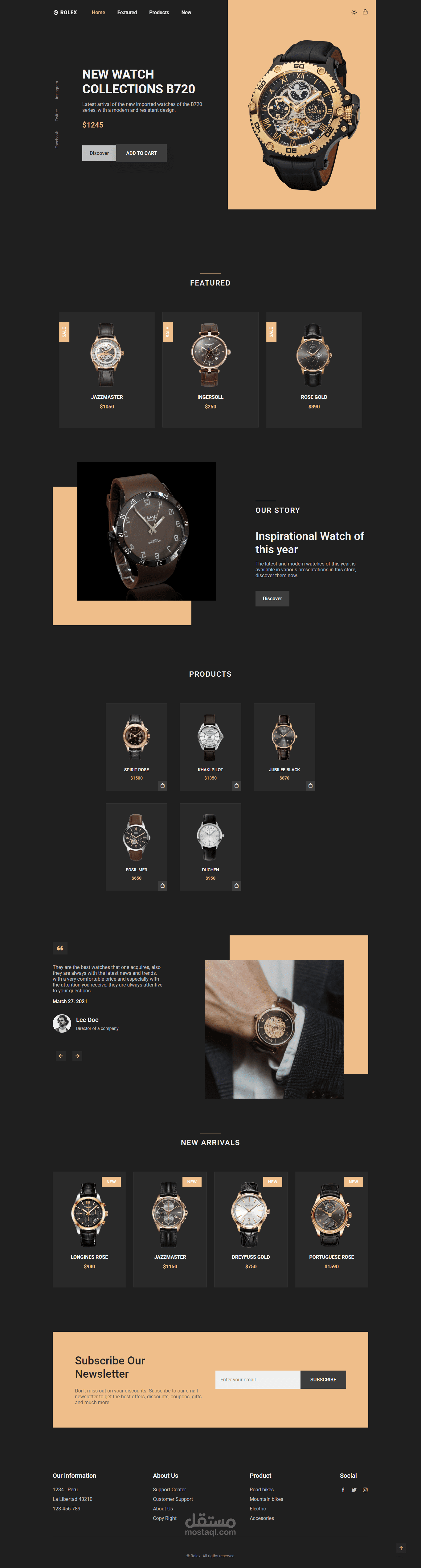 هذا العمل هو تطوير موقع لمحل ساعات Rolex عبر الإنترنت يعمل كمتجر إلكتروني. يتميز الموقع بتصميمه الجذاب والمتطور الذي يهدف إلى جذب الزوار وإثارة اهتمامهم بمنتجات المحل.