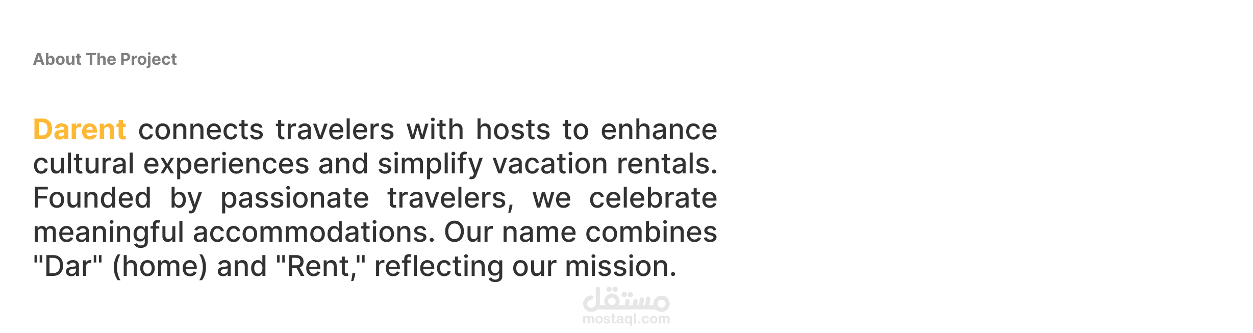 دارنت تربط المسافرين بالمضيفين لتعزيز التجارب الثقافية وتبسيط تأجير العطلات. تأسست من قبل مسافرين شغوفين، نحن نحتفل بالإقامات التي تحمل معاني عميقة. اسمنا يجمع بين "دار" و"رينت وهي كلمة تأجير بالإنجليزية" ليعكس مهمتنا.