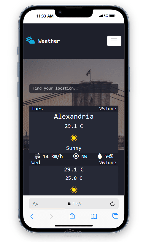 hashtag#JavaScript: I leveraged JavaScript to create an interactive user experience, fetch data from a weather API, and dynamically update the UI.