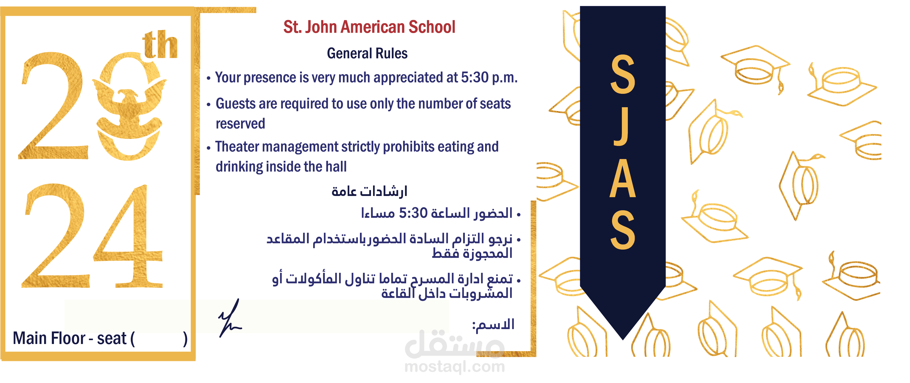 تذكرة حفل تخرج مدرسة سان جون الامريكية الدولية في مصر