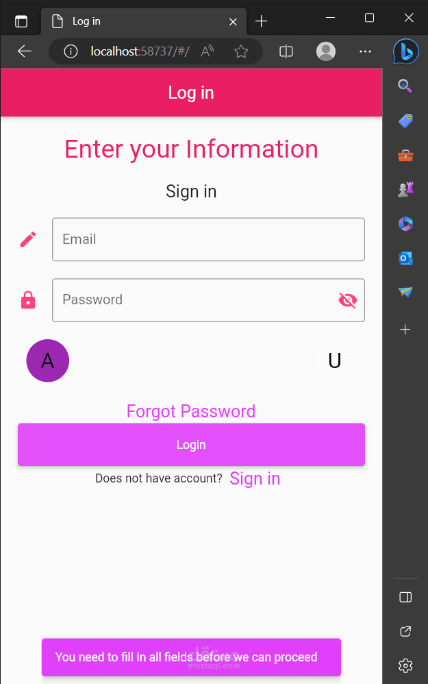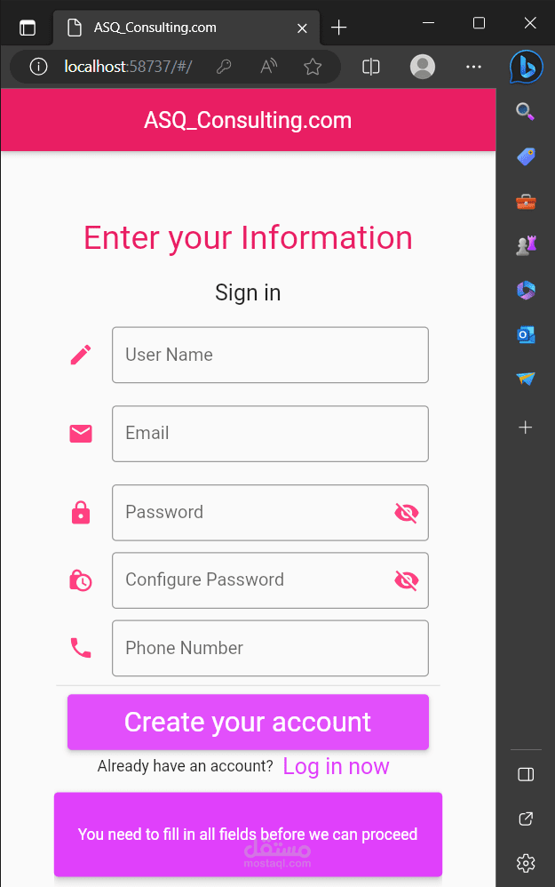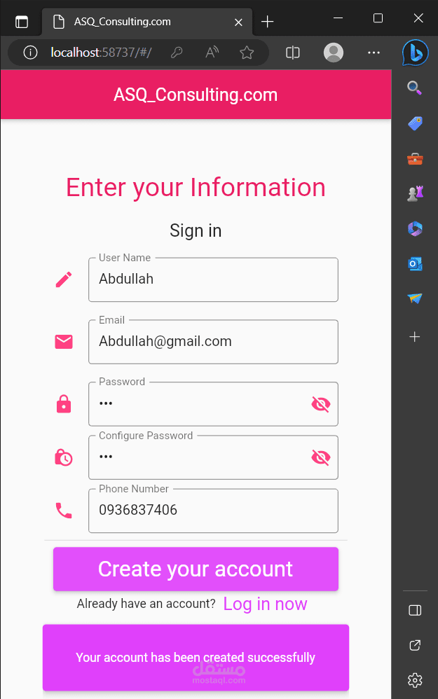 يقوم المستخدم بداية بإنشاء حساب عميل/خبير عبر واجهة ال sign up ثمَّ يقوم بتسجيل الدخول ك عميل/خبير وفي هذه الواجهة تتم عمليَّات authentication & authorization.