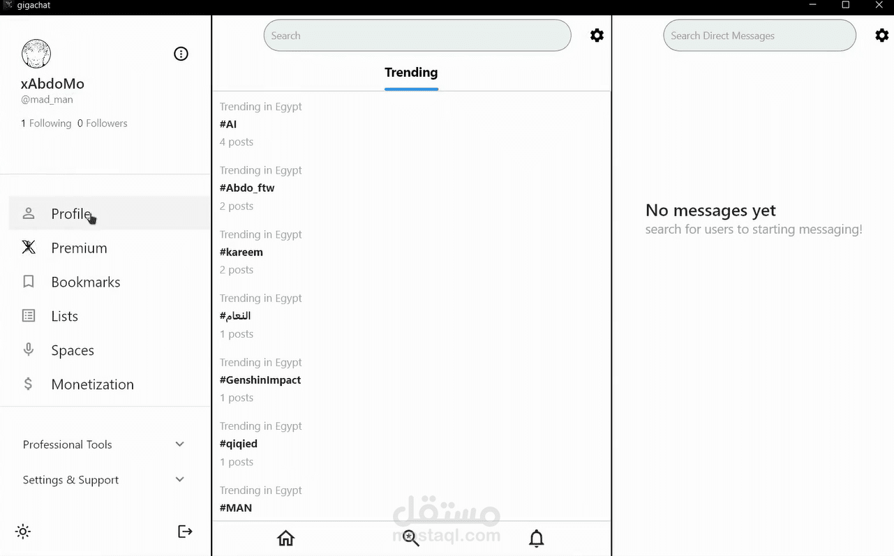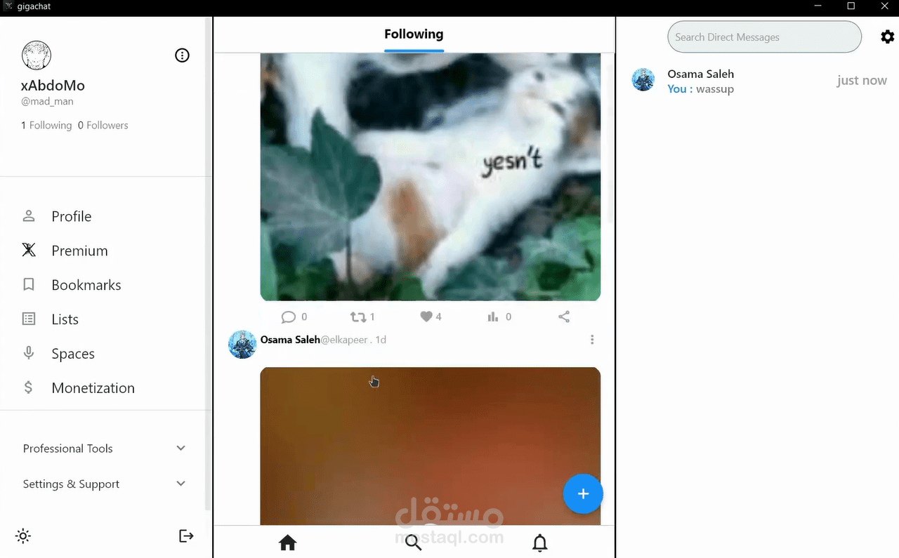 تطبيق توصل اجتماعي متكامل مشابه لتطبيق تويتر .. يدعم خواص مثل: التغريدات, الترندات, الدردشات ف الوقت الواقعي و الاشعارات للهاتف.