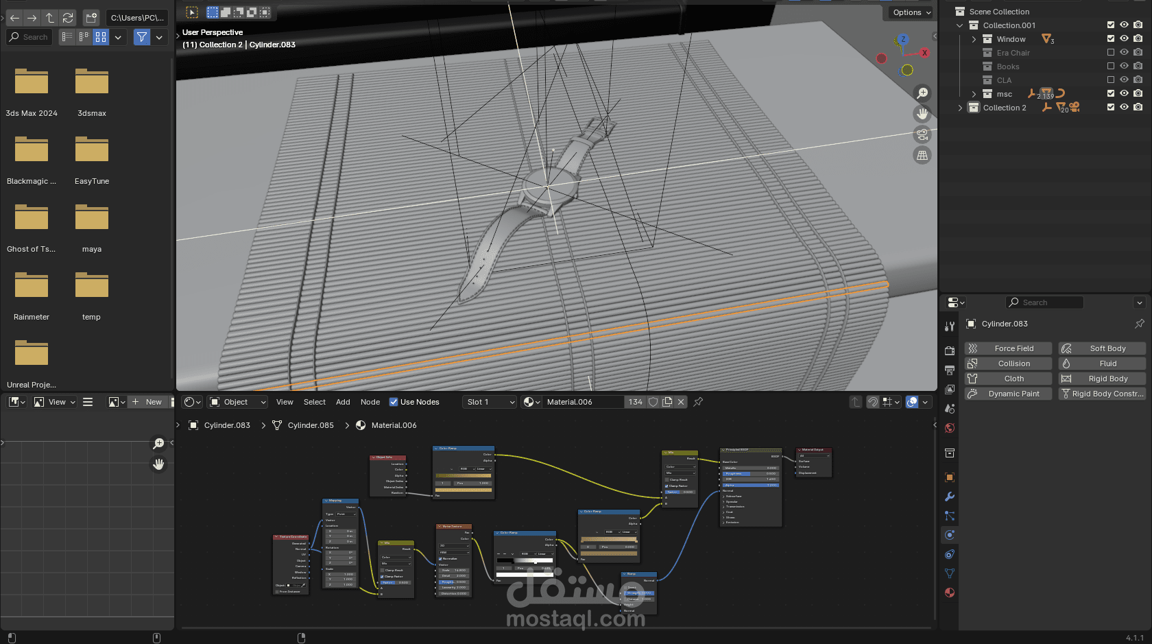 تطوير النموذج الثلاثي الأبعاد: استخدام برنامج Blender لبناء النموذج وإضافة التفاصيل.