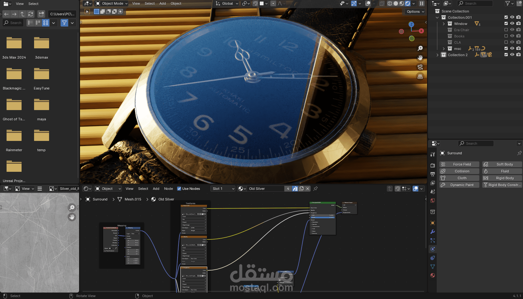 مشروع ثري دي لتصميم منتج ساعة(Hamilton MURPH watch) يشمل إنشاء نموذج ثرى دى باستخدام برنامج Blender 3D.