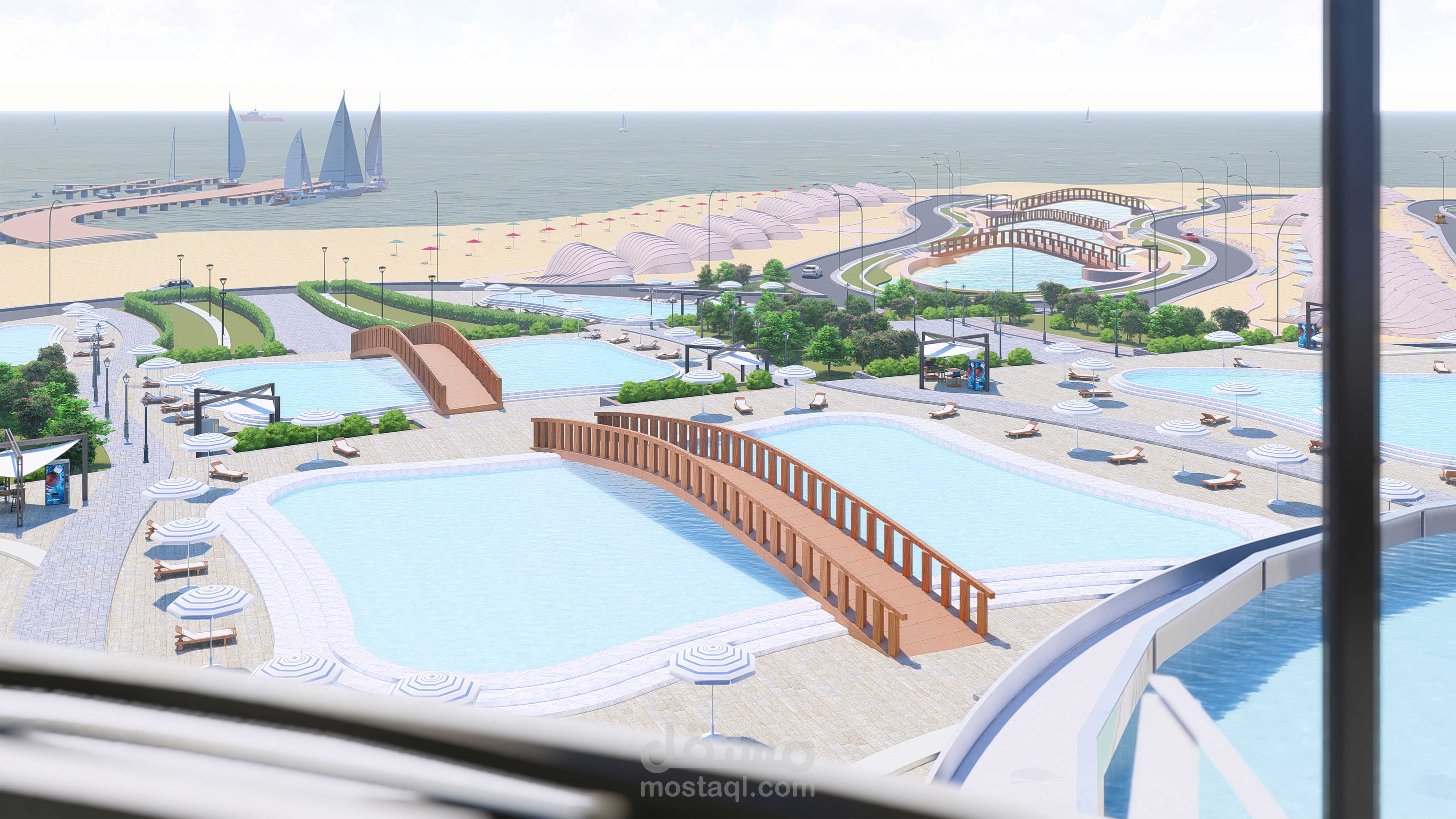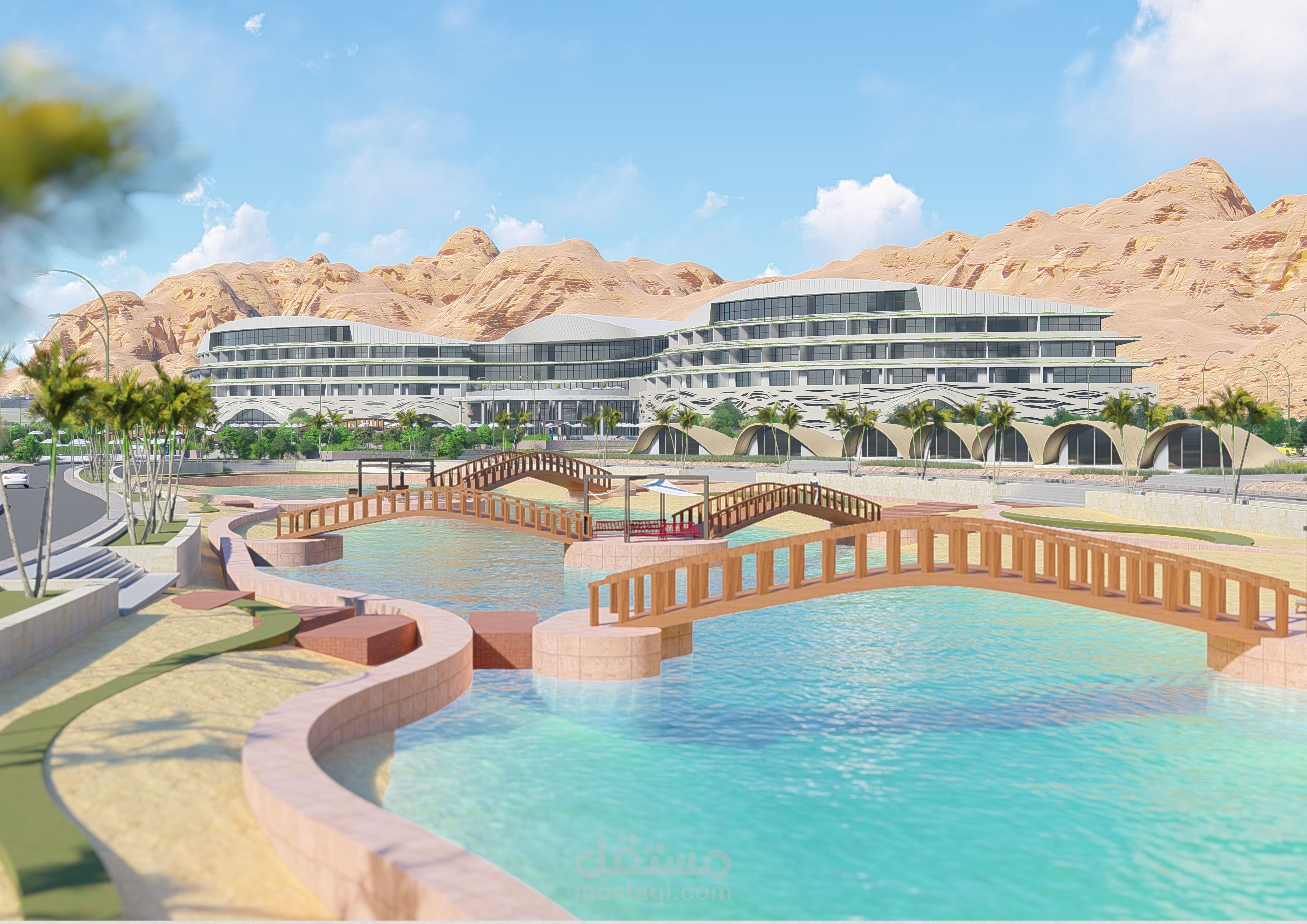 بحيرات صناعية: لإنشاء بيئة طبيعية مريحة تعزز من جمال المناظر المحيطة.