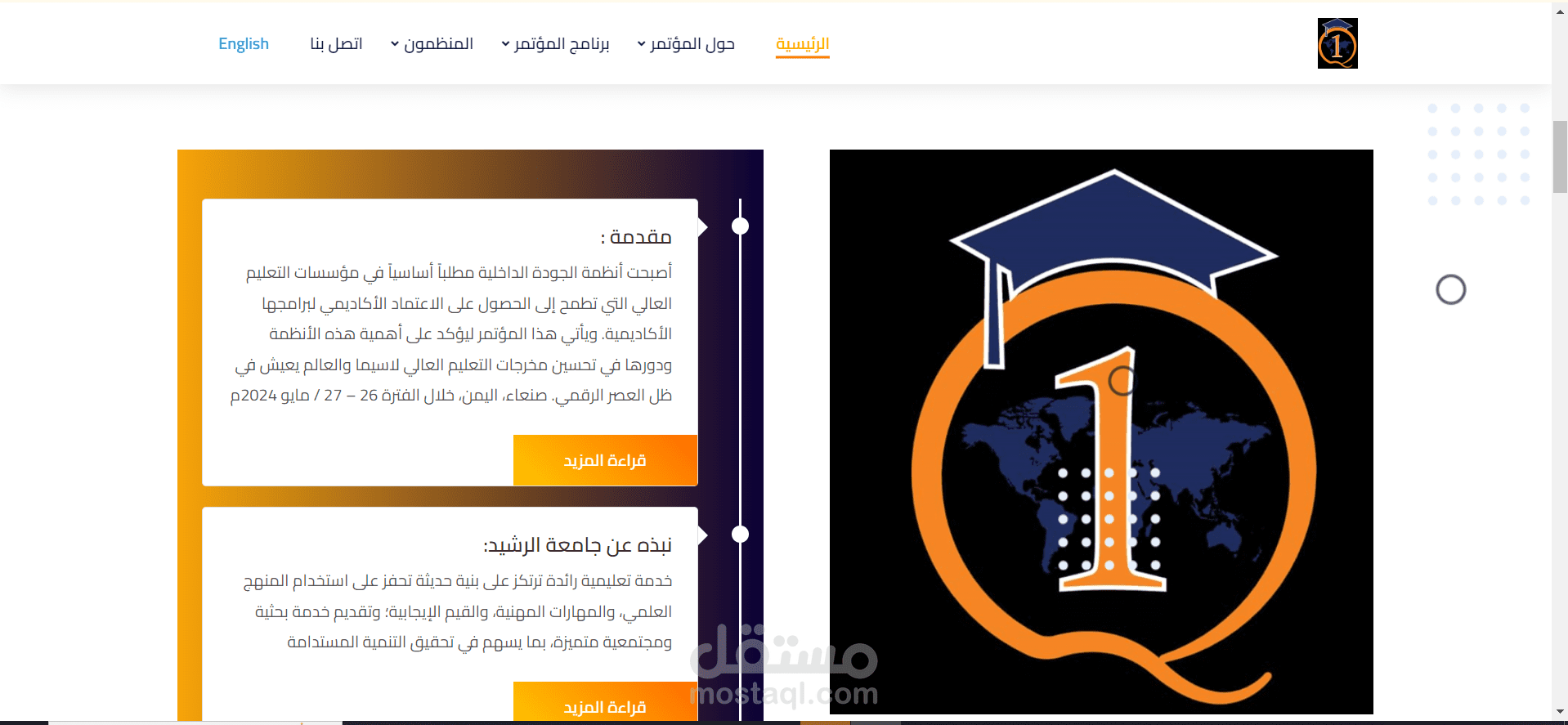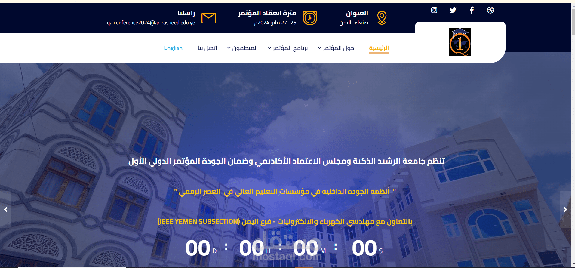 موقع IQASDA مخصص للمؤتمر الأول لضمان جودة التعليم في الجامعات العربية الذي ينظمه جامعة الرشيد الذكية ومجلس الاعتماد الأكاديمي وضمان الجودة في اليمن. المؤتمر يعقد في صنعاء في الفترة من 26 إلى 27 مايو 2024، ويركز على أهمية أنظمة ضمان الجودة الداخلية في التعليم العالي في العصر الرقمي