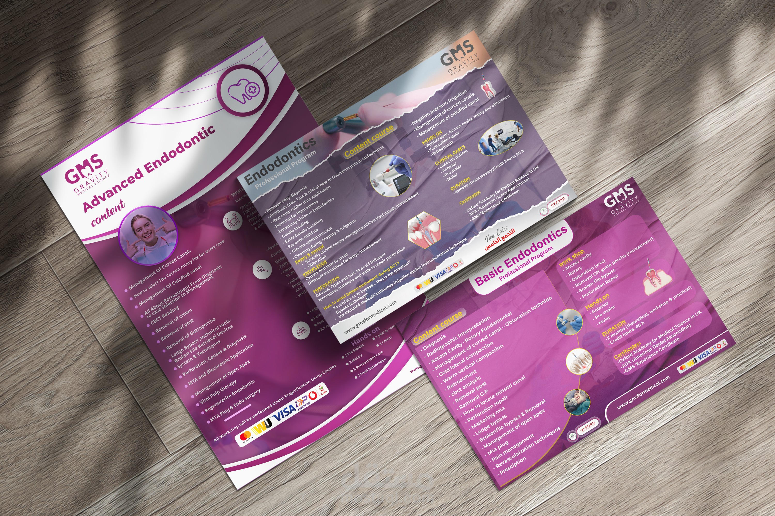 Dental Flayers & Brochures for informing dentists about course content , workshops & Lectures