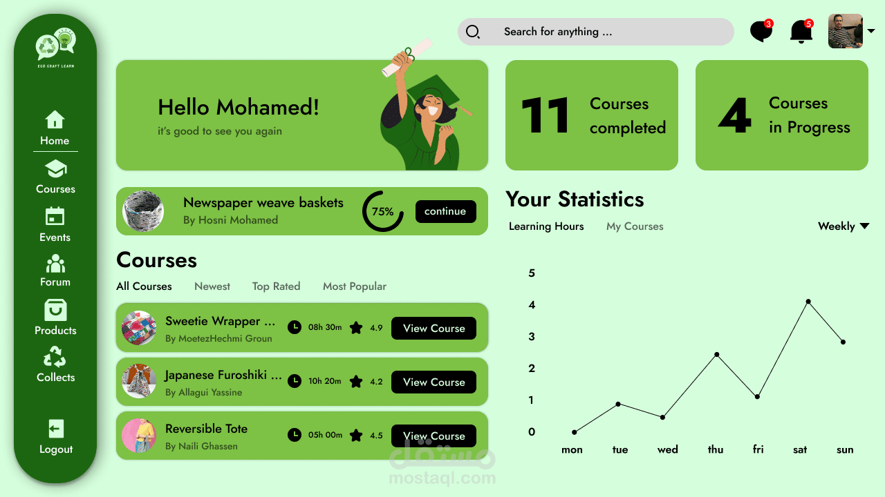 منصة EcoCraftLearning هي منصة مبتكرة للتعلم الإلكتروني والتجارة الإلكترونية مخصصة لإنشاء منتجات من مواد قابلة لإعادة التدوير. تتمثل مهمتنا في تعزيز التعلم والإبداع مع تشجيع التنمية المستدامة. تقدم EcoCraftLearning ما يلي: