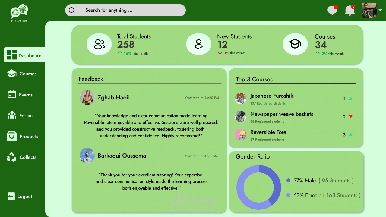 التجارة الإلكترونية: الطلاب الذين يتابعون دوراتنا لديهم فرصة لبيع المنتجات التي أنشأوها مباشرة على منصتنا. هذا يمكنهم من تحويل مهاراتهم الجديدة إلى مصدر دخل مع تعزيز الاقتصاد الدائري.