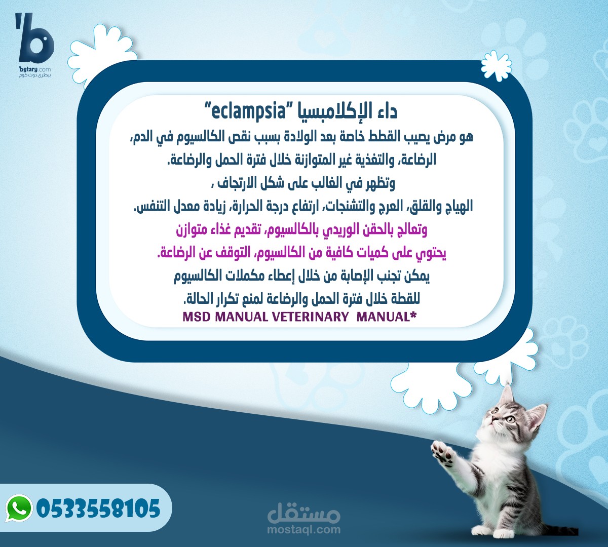 تقدم الكثير من منتجات القطط والاستشارات الطبية والنصائح الطبية
