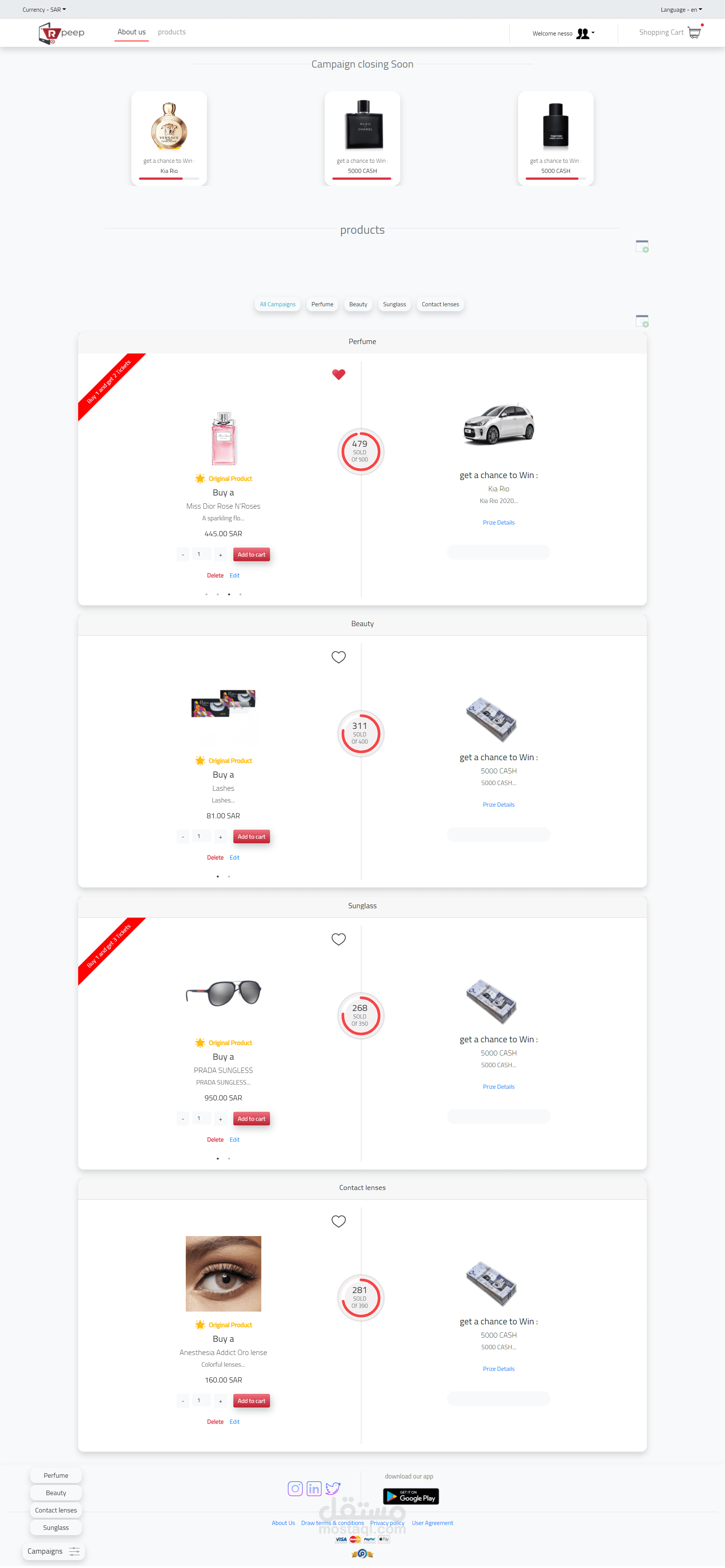 موقع تجاري لعرض المنتجات و الجوائز و جمع النقاط و متعدد بوابات الدفع الالكتروني