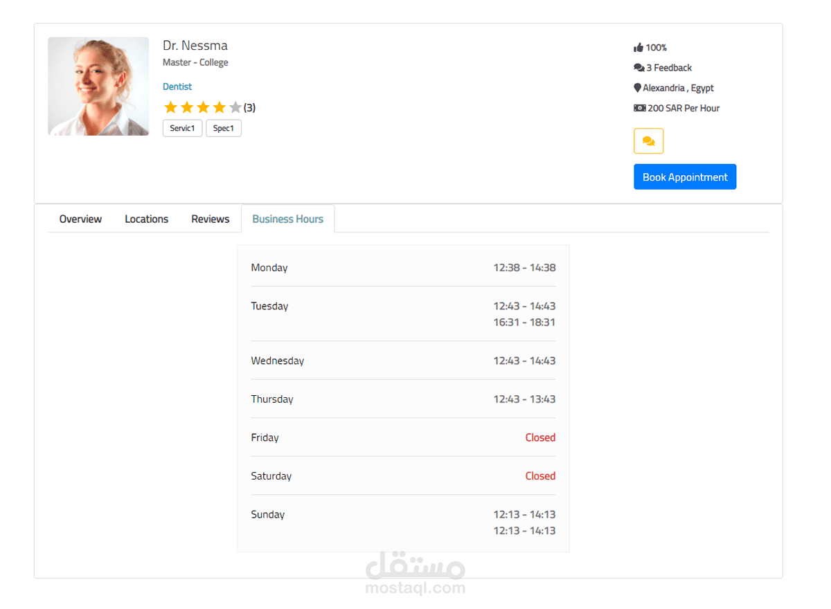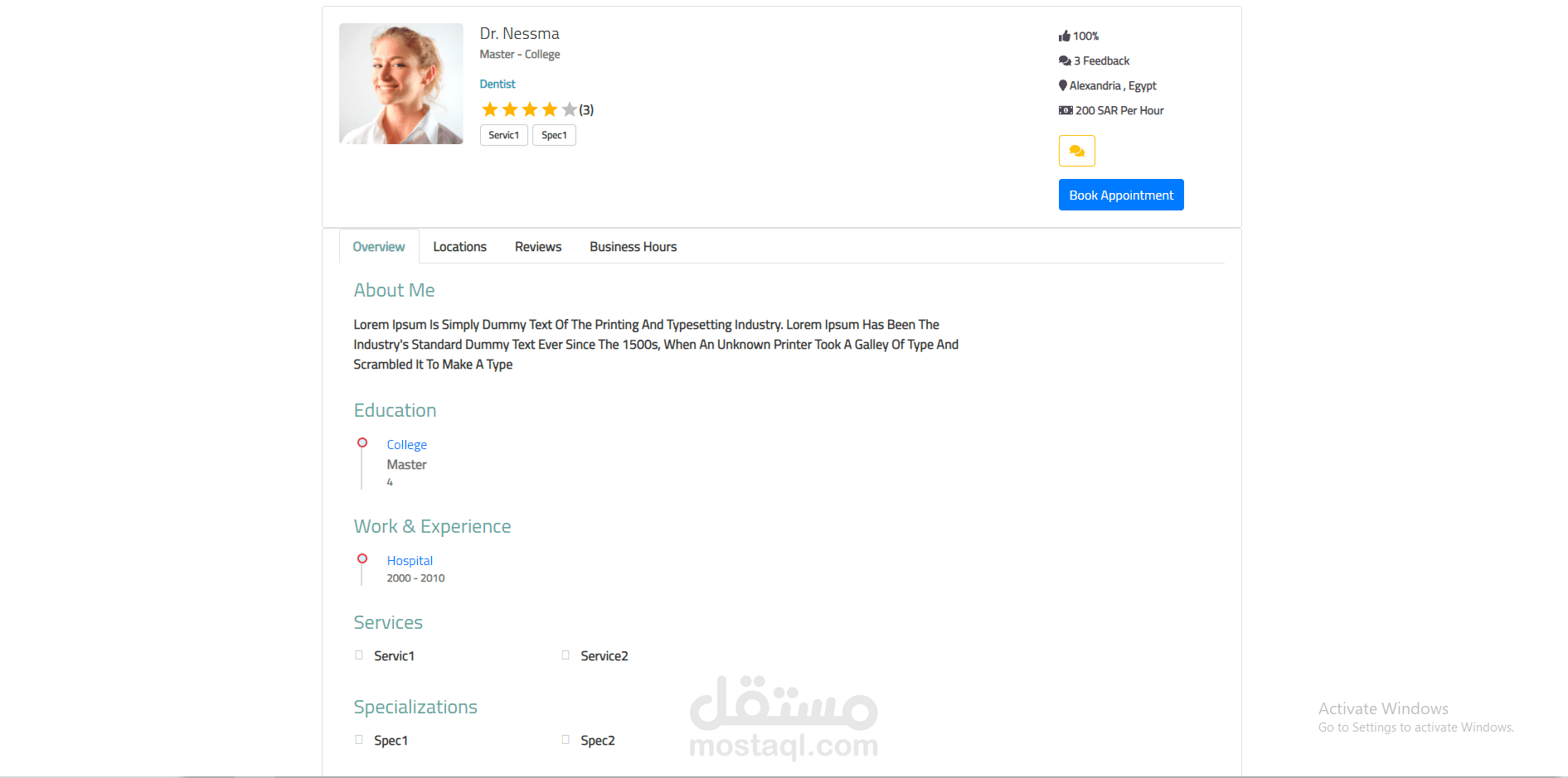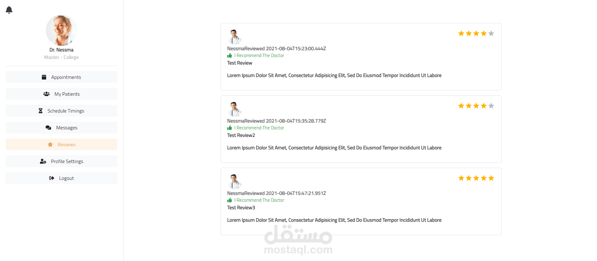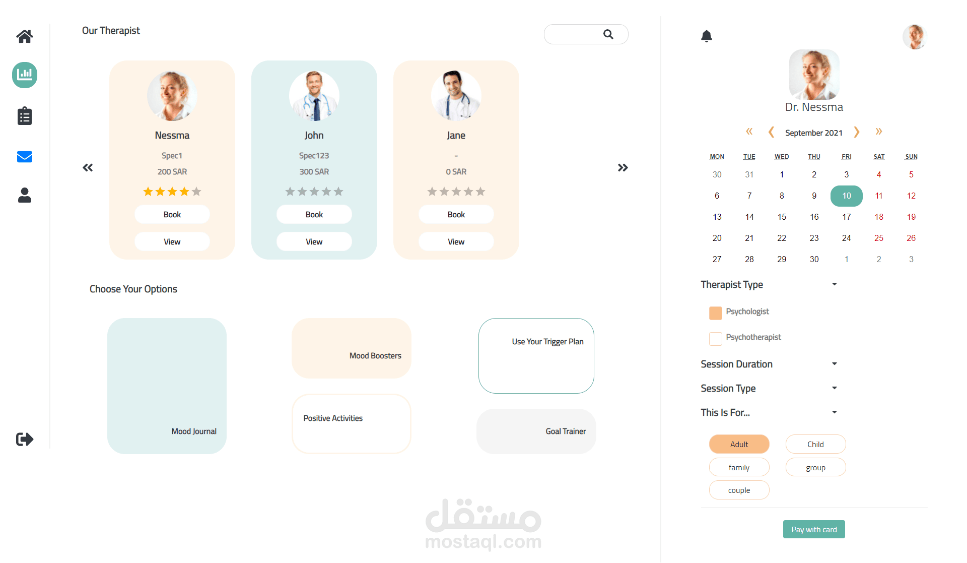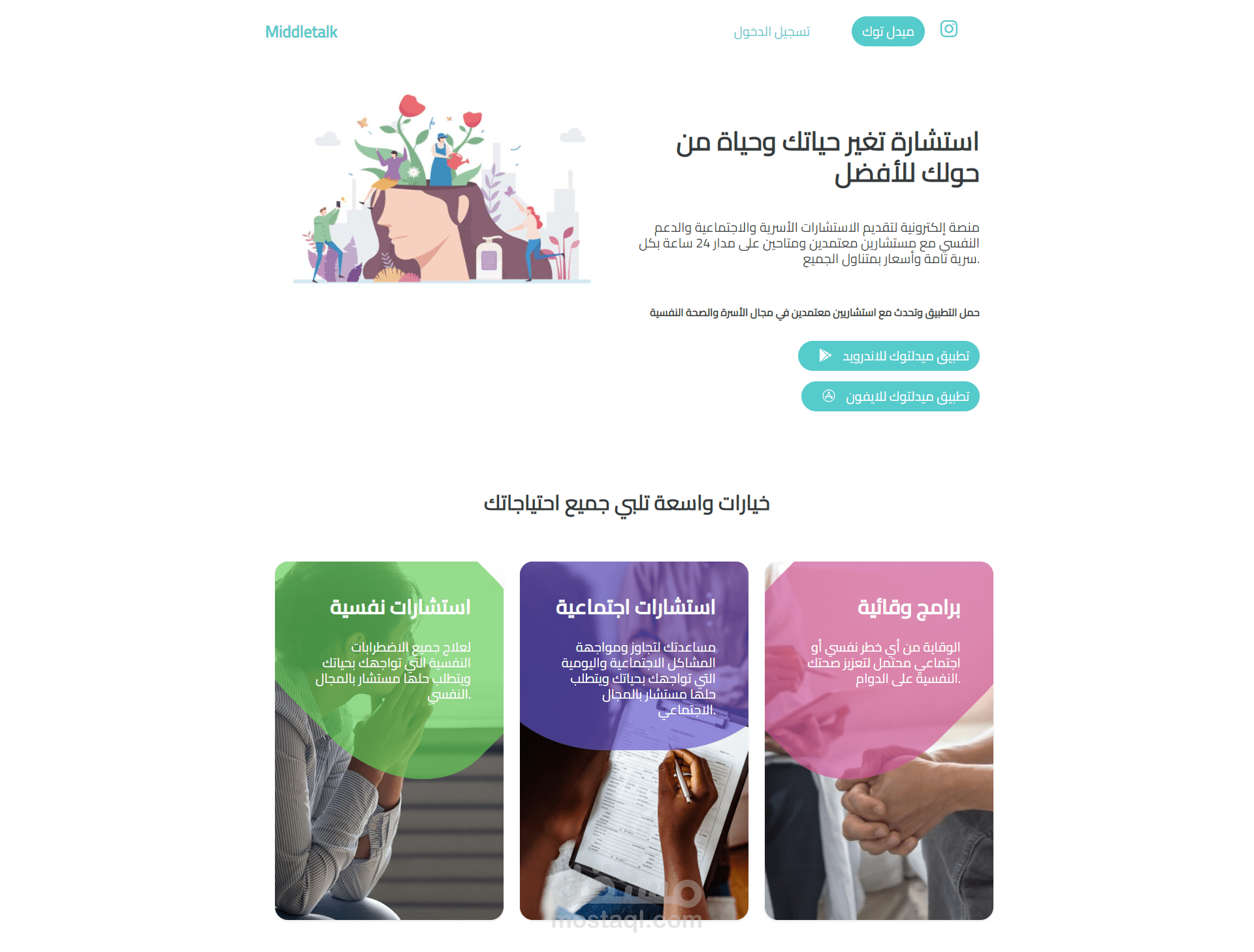 موقع لحجز الاستشارات النفسية مع الاطباء مع خدمة المحادثات الصوتية و الكتابية و ايضا مع دفع الكتروني و لوحة تحكم لكل طبيب لاضافة المواعيد مع المرضي و عرض التقييمات و الحجوزات
