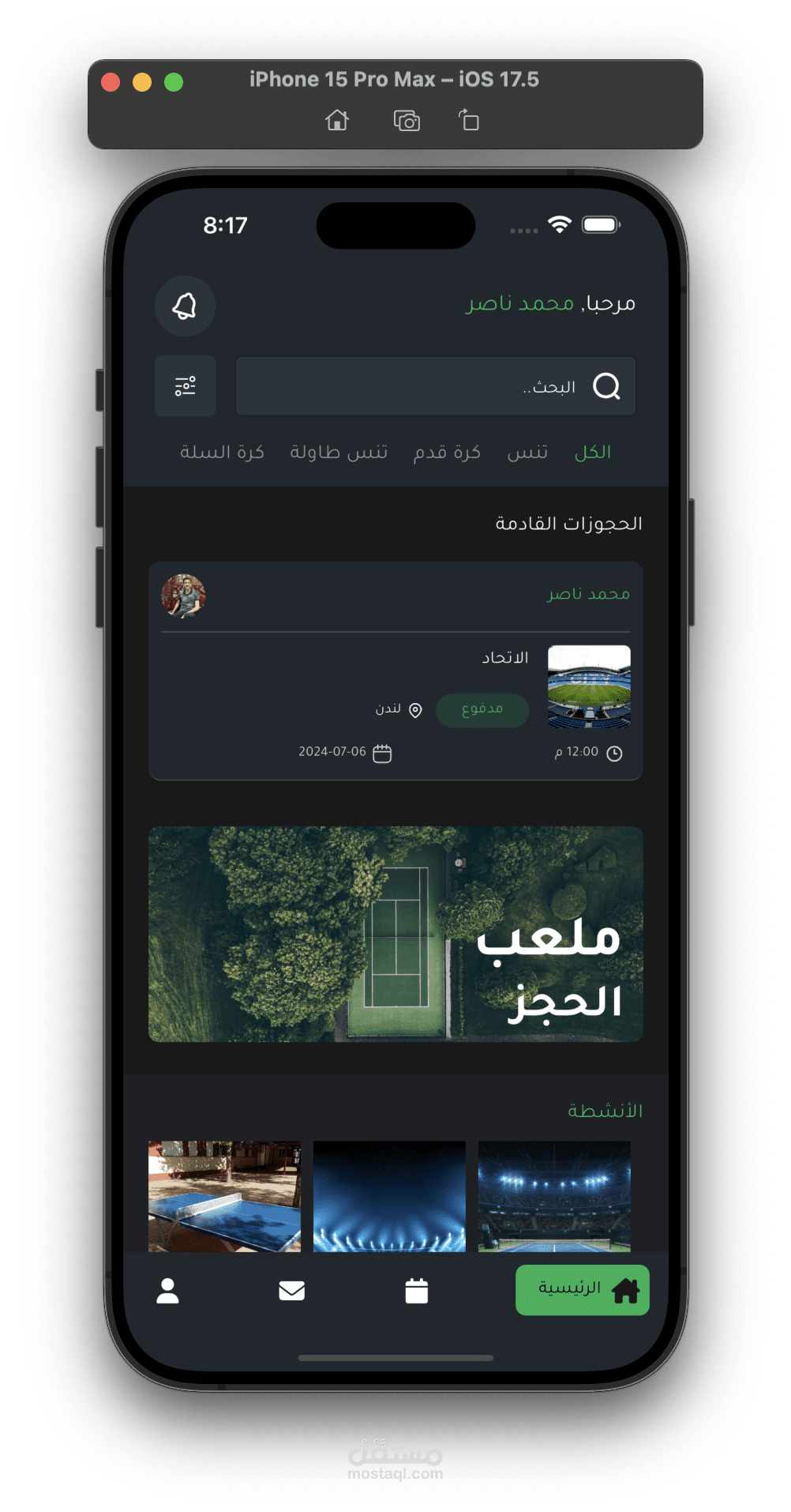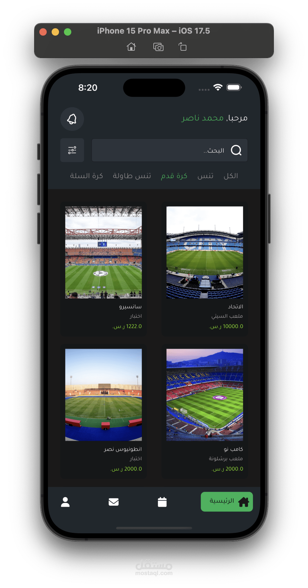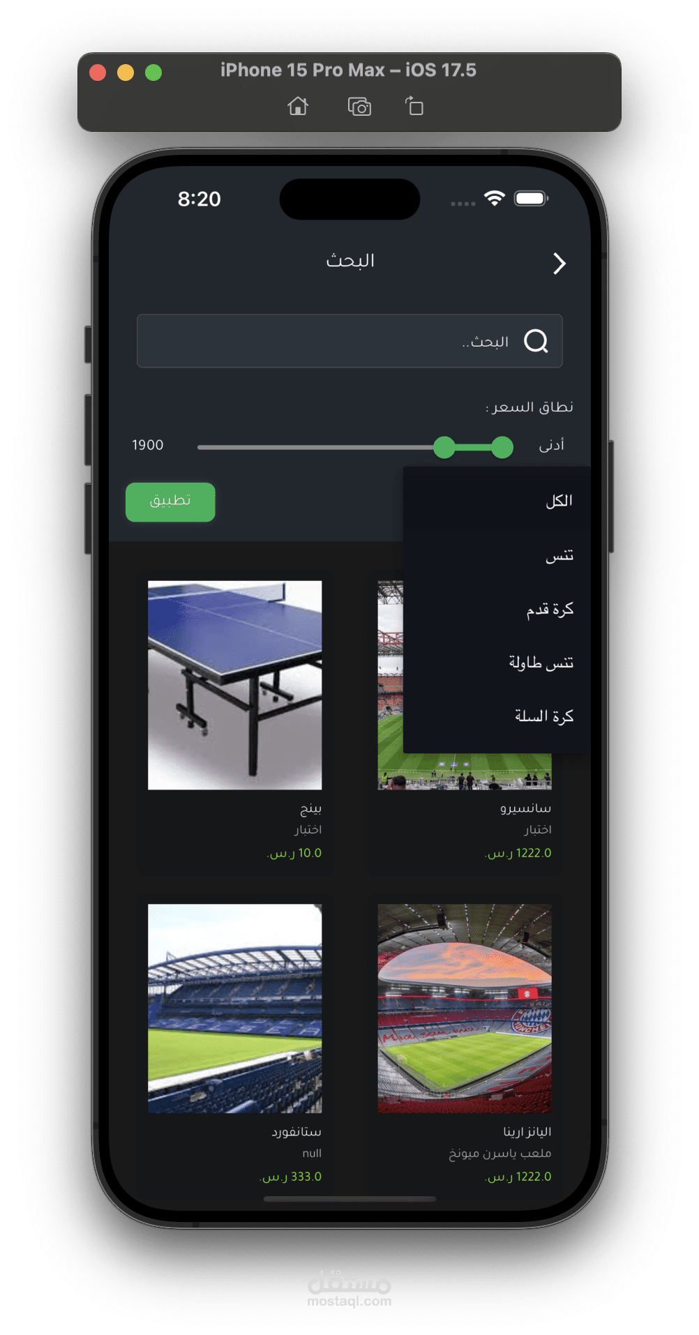 يمكنك البحث واستخدام filters للبحث عن ملعب معين.