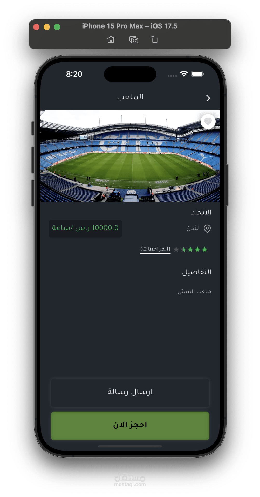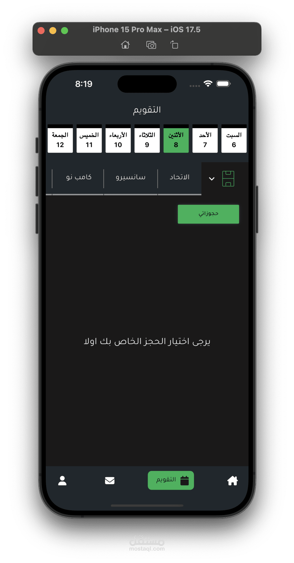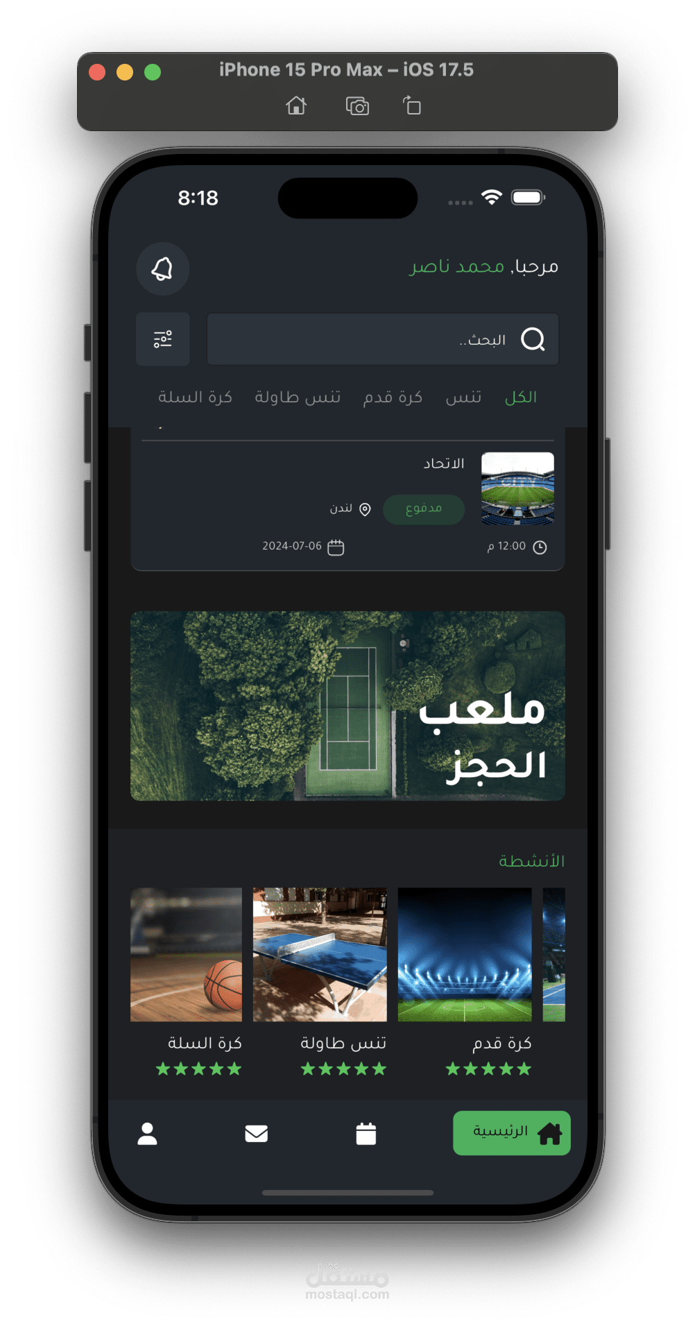 يمكنك البحث واستخدام filters للبحث عن ملعب معين.