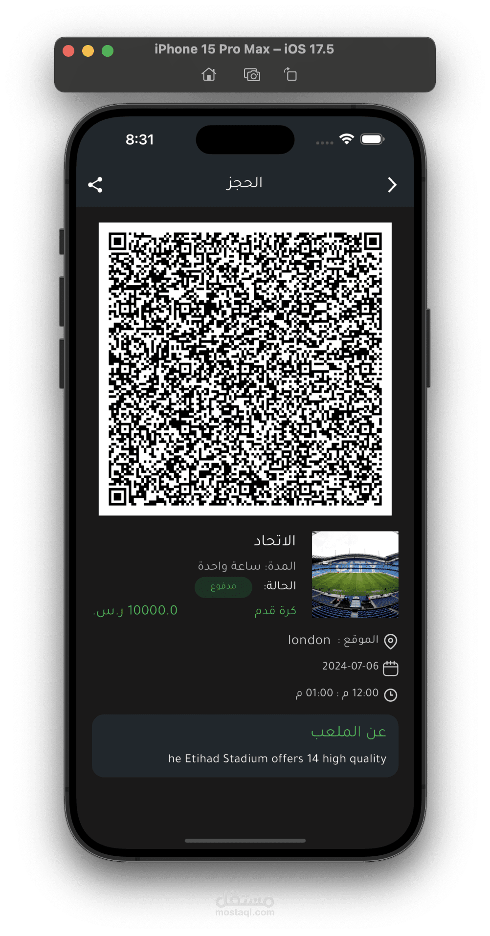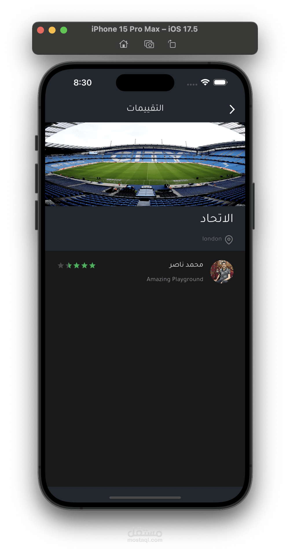 يمكنك اعطاء تقييمات للملعب الذي قمت بحجزه من قبل.