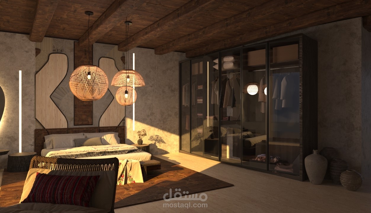 إكسسوارات: تُزين الإكسسوارات المصنوعة من المواد الطبيعية، مثل الخشب أو القماش أو السلال المصنوعة من الحبال، المساحة وتضفي لمسة تقليدية ساحرة.