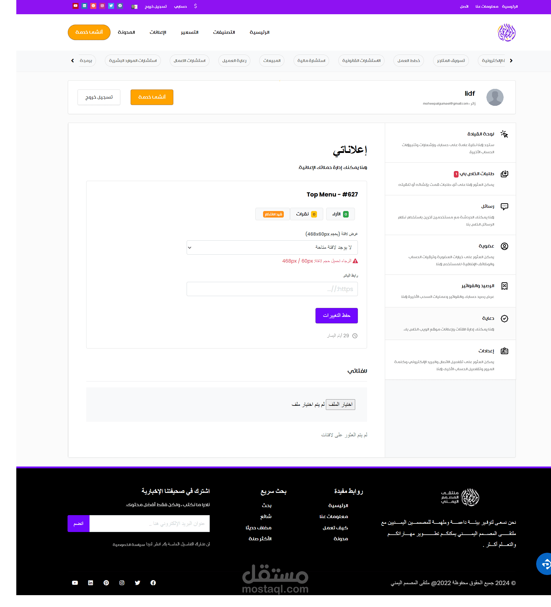 الاعلانات عبر المنصة
