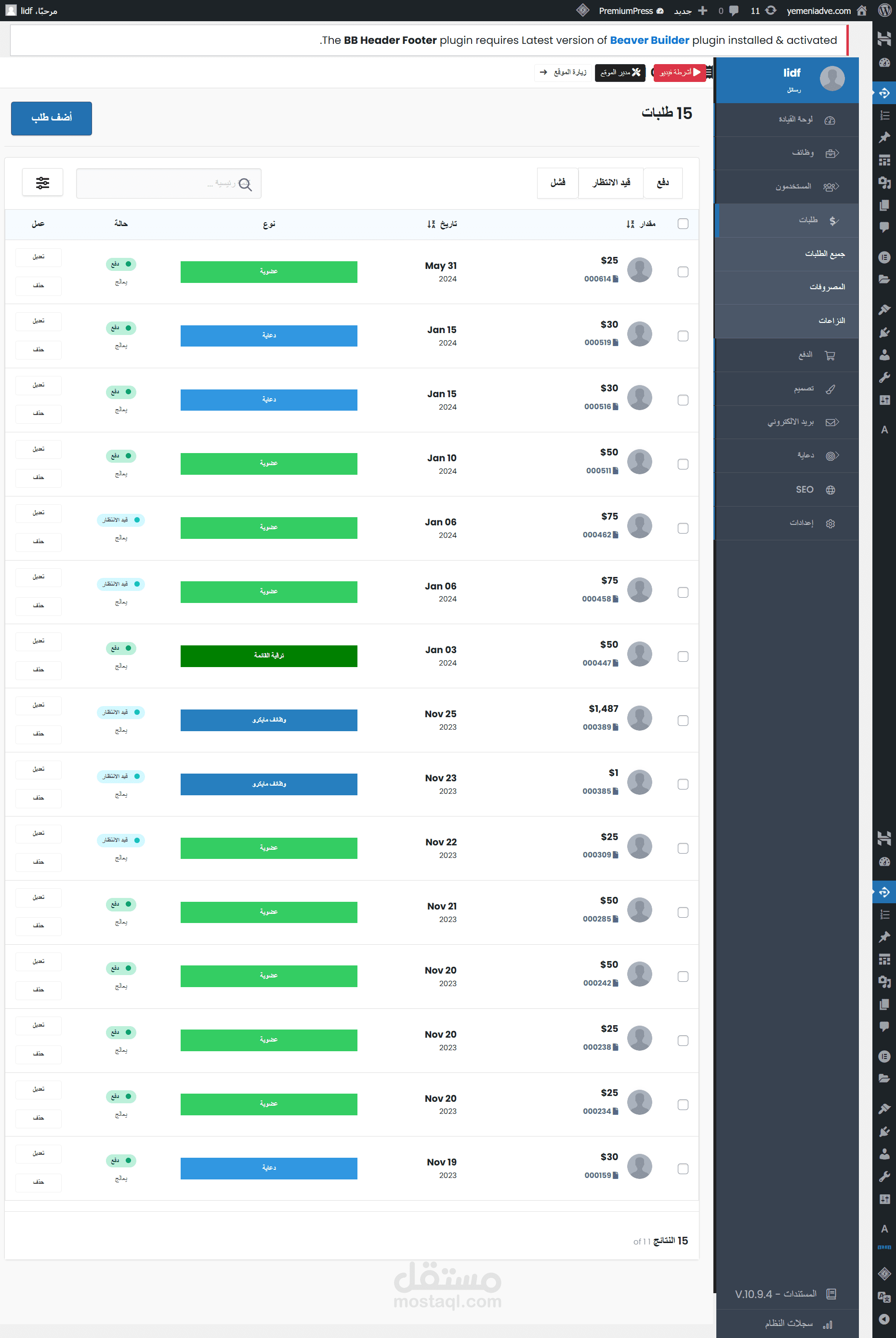 ادارة الطلبات