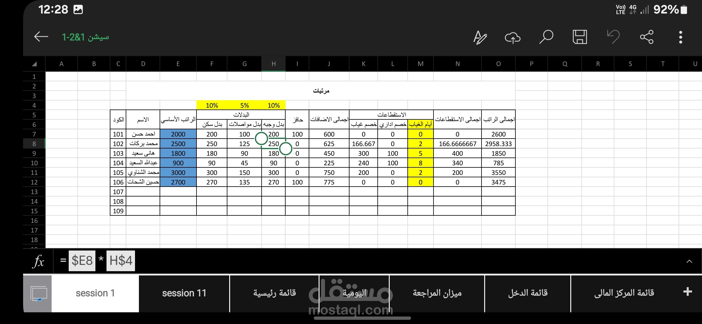 قمت بتظبيط البدلات والحوافز وأيام الحضور والغياب ع شيت اكسل