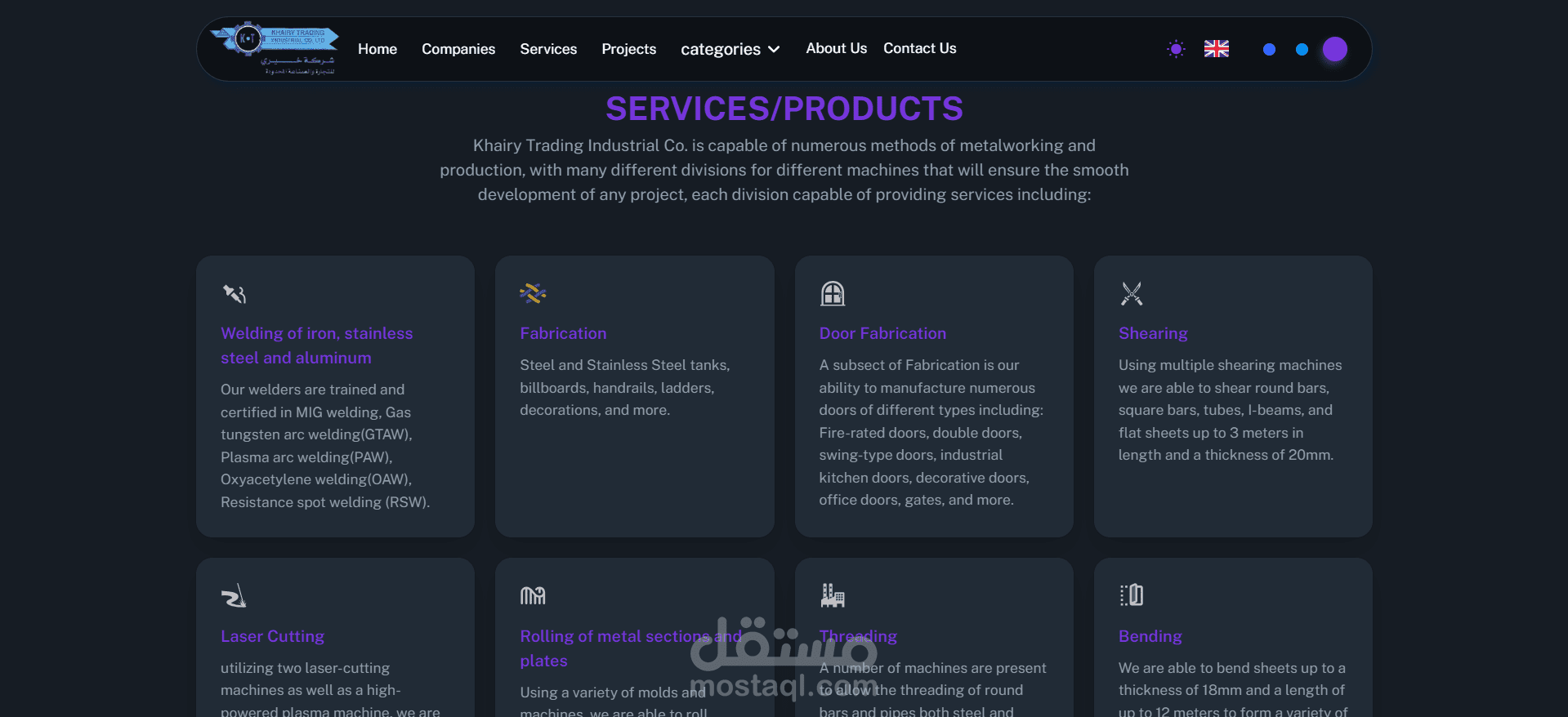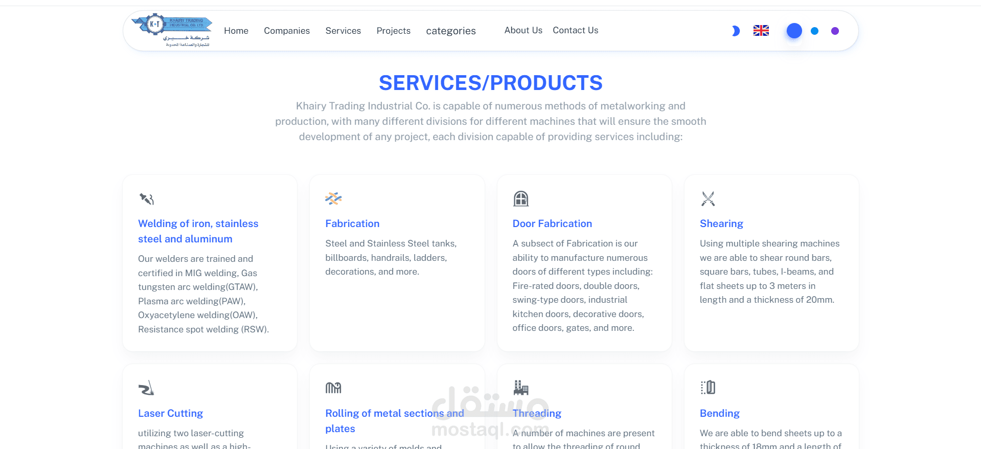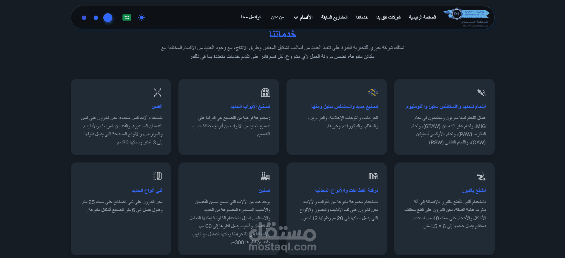 التعريف بالخدمات: يعرض الموقع كافة الخدمات المتاحة بالمصنع بشكل مفصل، موضحاً كيفية تنفيذ كل خدمة بشكل احترافي.