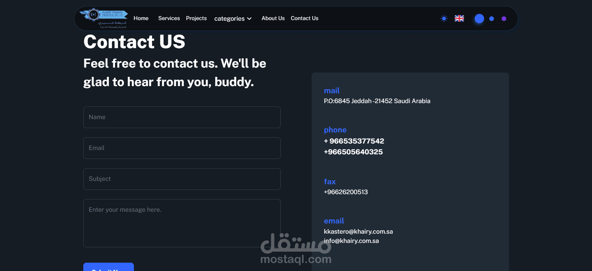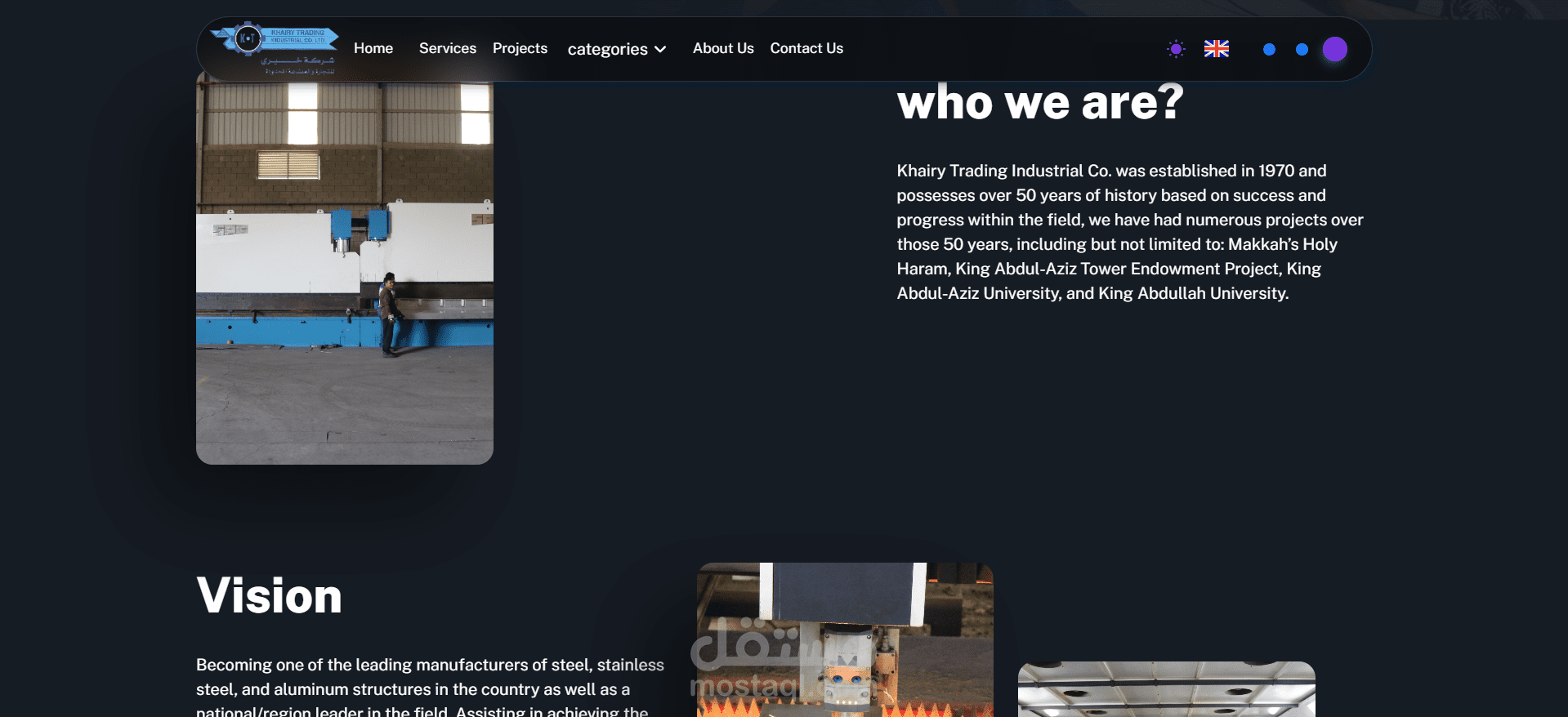 موقع ويب خاص بمصنع الخيري للتجارة الصناعية. يهدف هذا الموقع إلى تعزيز نمو التجارة الصناعية الخاصة بالشركة والتعريف بمميزاتها وخصائصها بشكل مثالي.