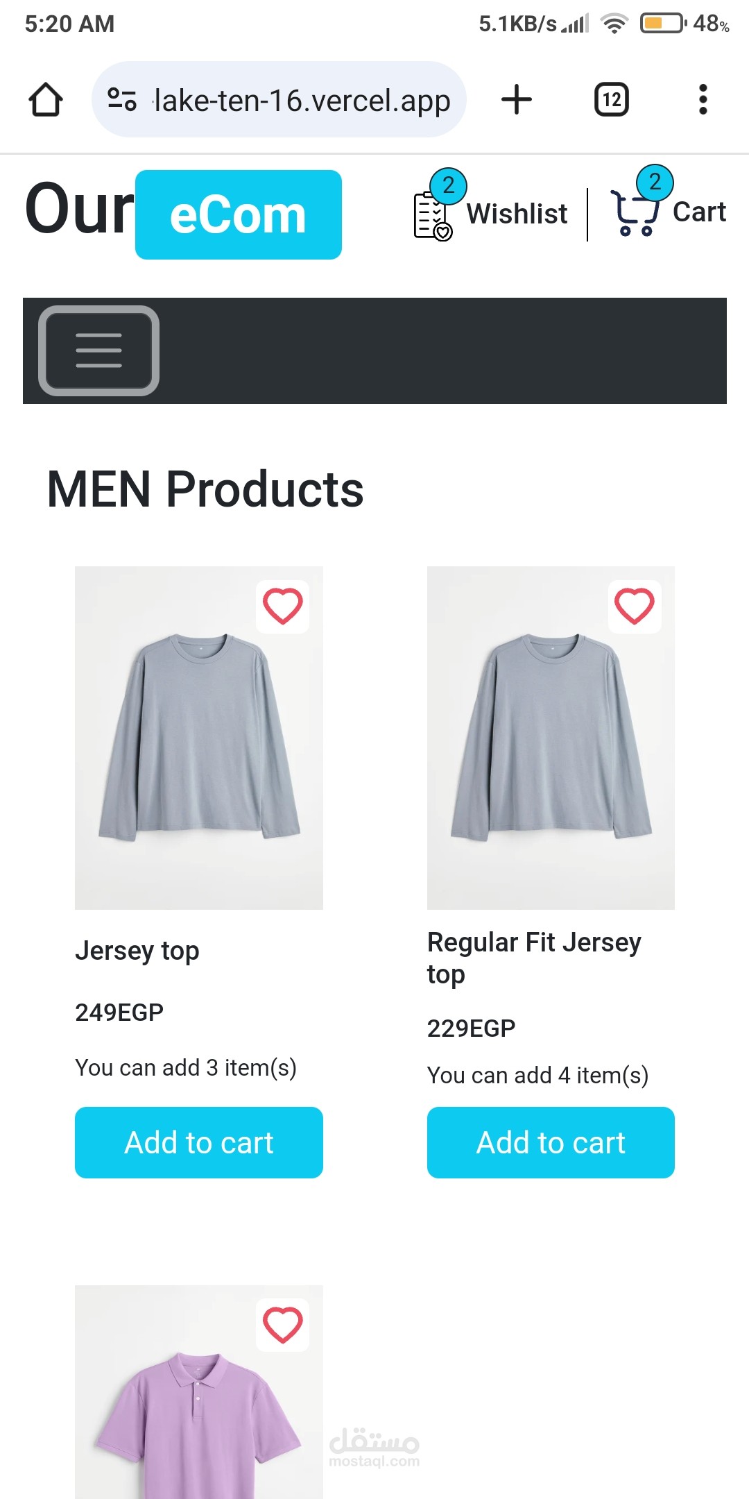 - إمكانية إضافة المنتجات إلى عربة التسوق.