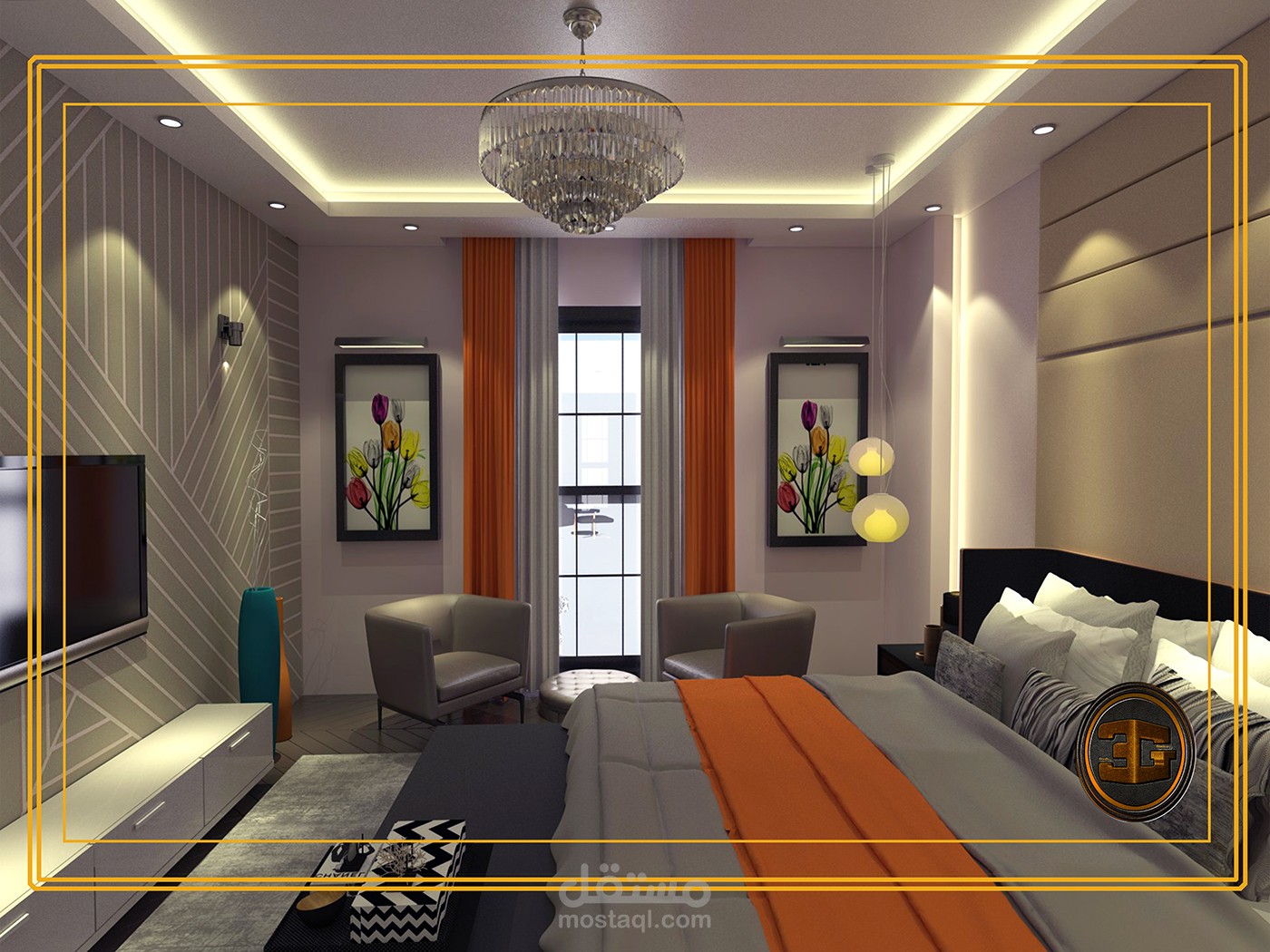 تصميم داخلى لغرف نوم رئيسية طراز مودن