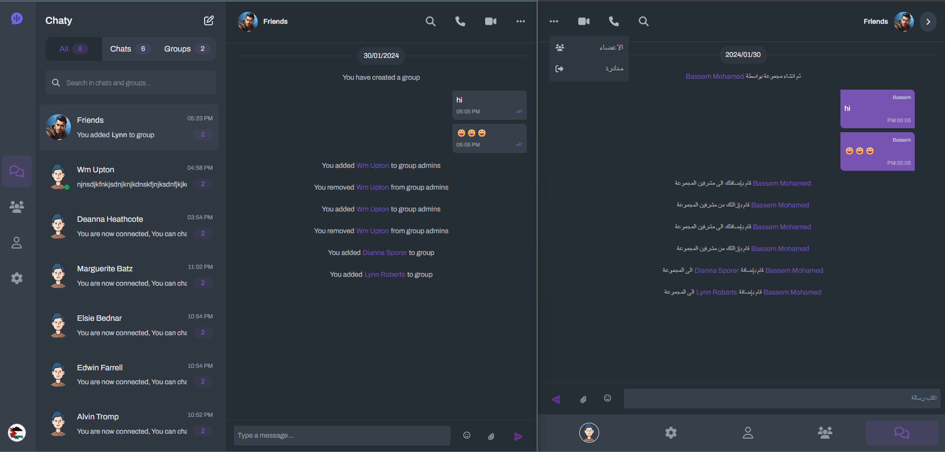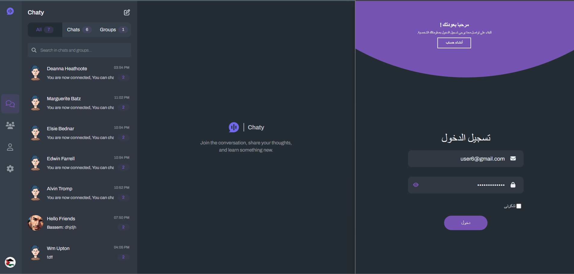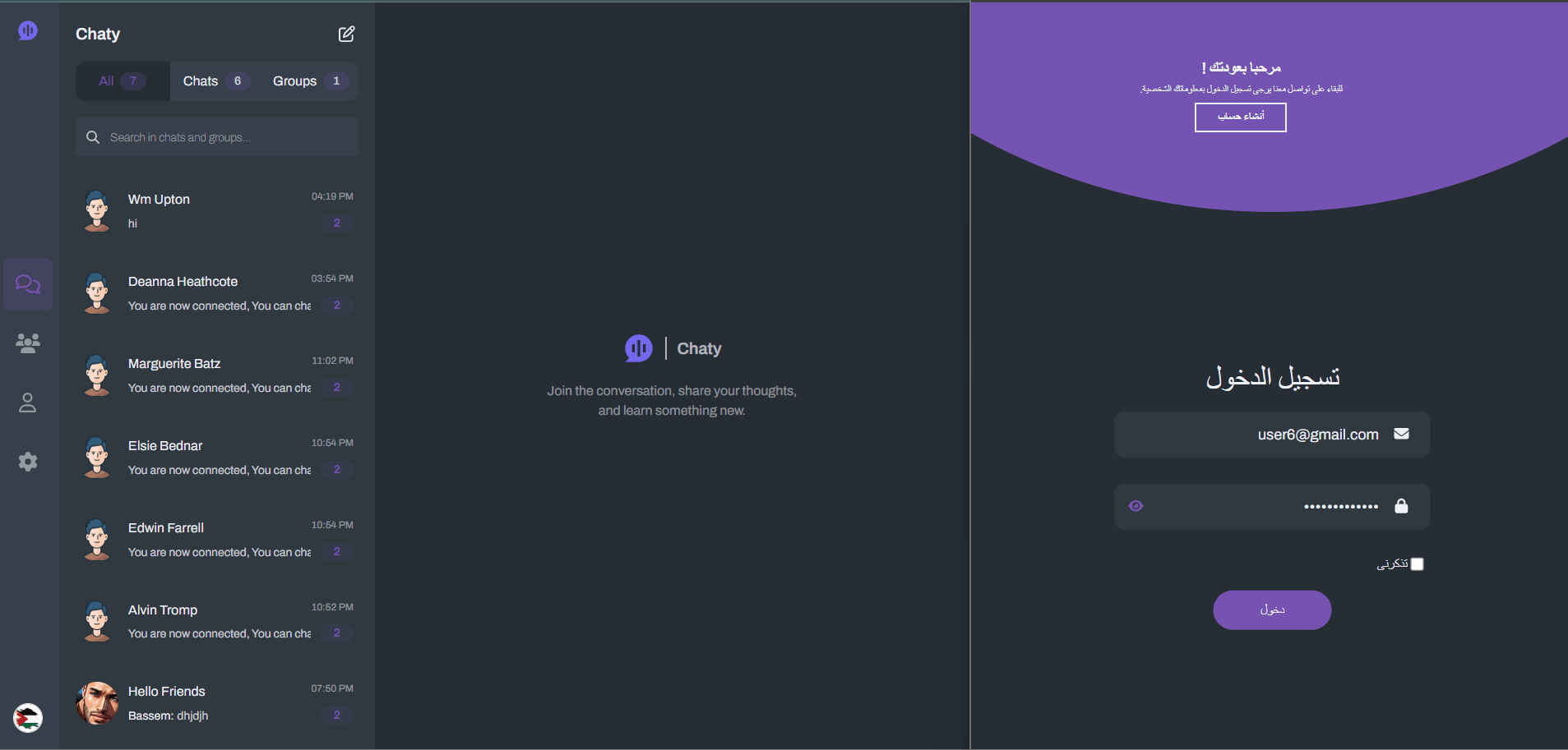 Chaty is a multilingual, real-time chat website supporting private and group conversations.