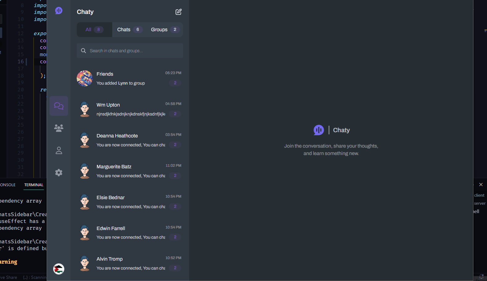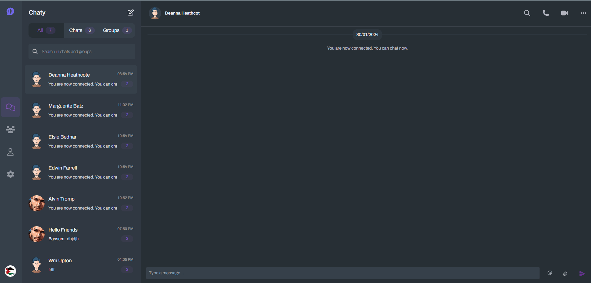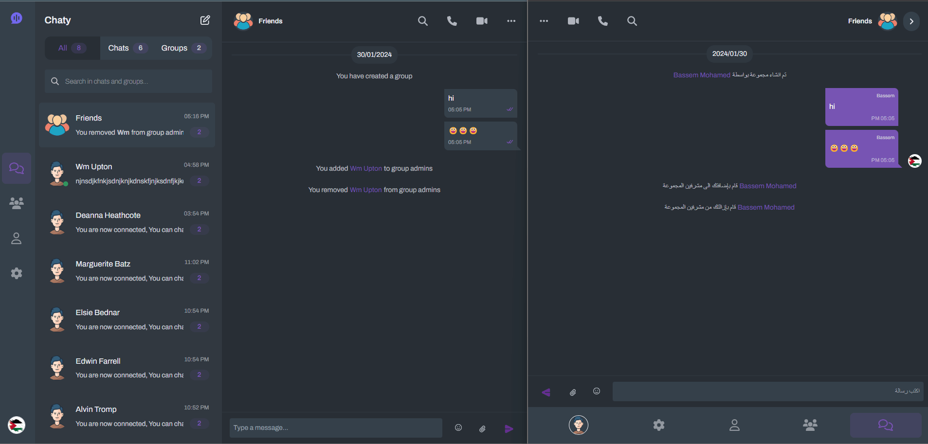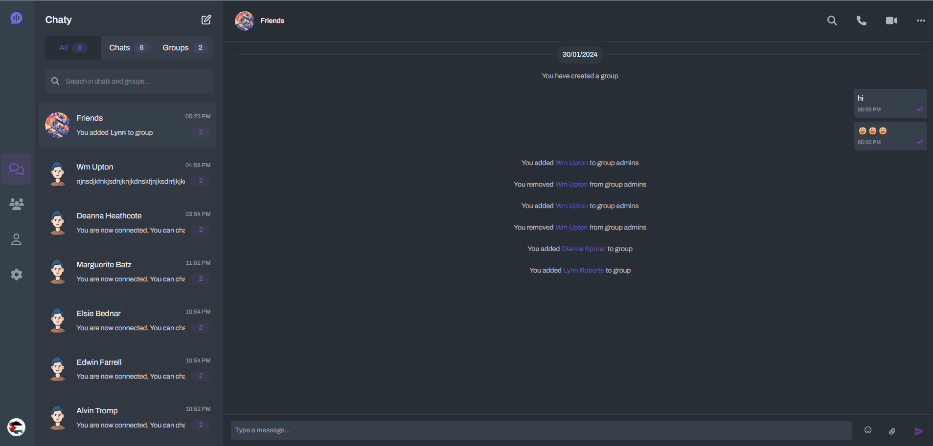 Chaty is a multilingual, real-time chat website supporting private and group conversations.